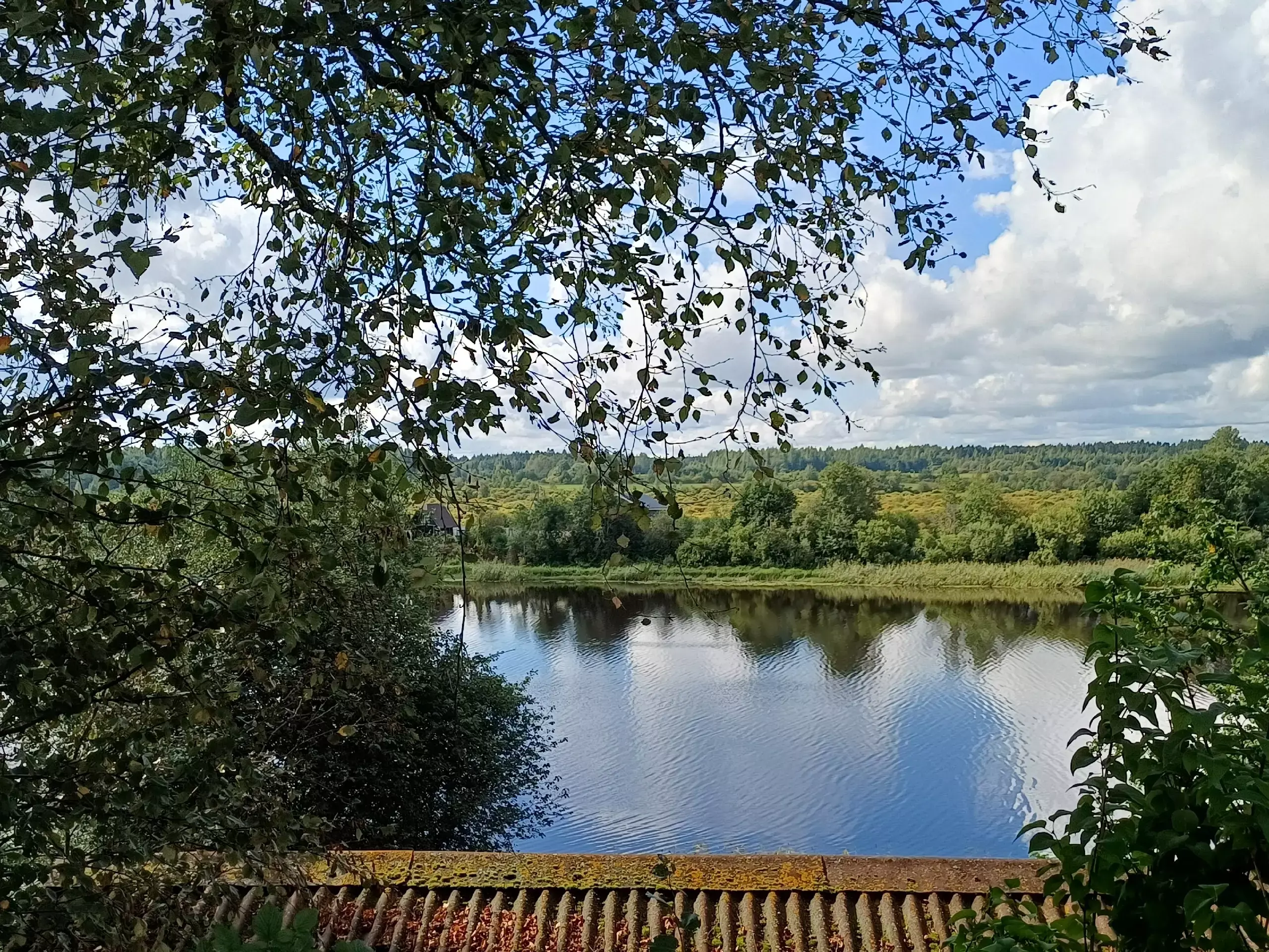 Вид на реку Сясь, которая течет почти параллельно дороге: