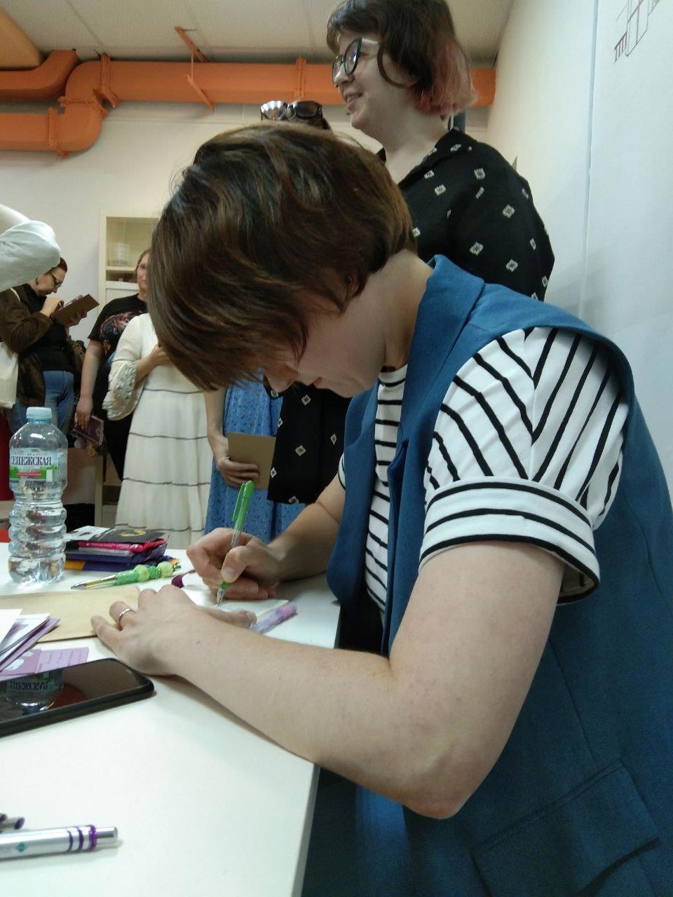 Честно, стоило мне увидеть добрые глаза читателей, как от страха не осталось и следа. Мы очень душевно поговорили и обменялись подарками. Я привезла целый пакет книг для розыгрыша и уехала обратно с ним же, но полным шоколадок и разных других приятных штук (показала в телеграме)!