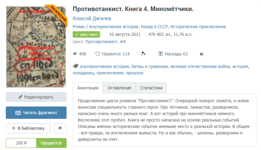 Но это была только присказка, а началось всё с того, что я нашёл архив своего деда. Немного, буквально с десяток тетрадных листов, плюс письма и ответы на рассылаемые запросы. Вот из этого небольшого архива я и узнал, где и в каких воинских частях и соединениях воевал мой дед в разный период ВОВ. Наиболее полно дед написал про боевые действия под Москвой, где в районе Наро-Фоминска насмерть стояла 110-я стрелковая дивизия. Эти бои и легли в основу четвёртой книги цикла "Противотанкист". А так как книга художественная, да ещё про военные приключения, то и автору пришлось напрягать фантазию и домысливать кое-что, а то без приключалова будет неинтересно читать...