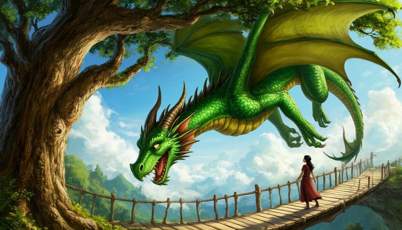 Автор: Алена СказочницаДракон свесился с дерева вниз головой: