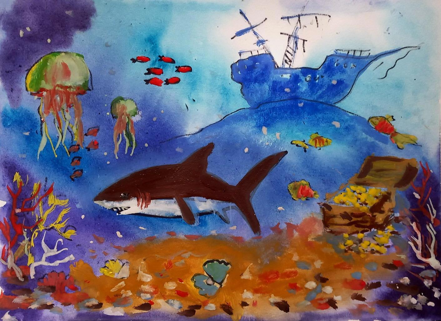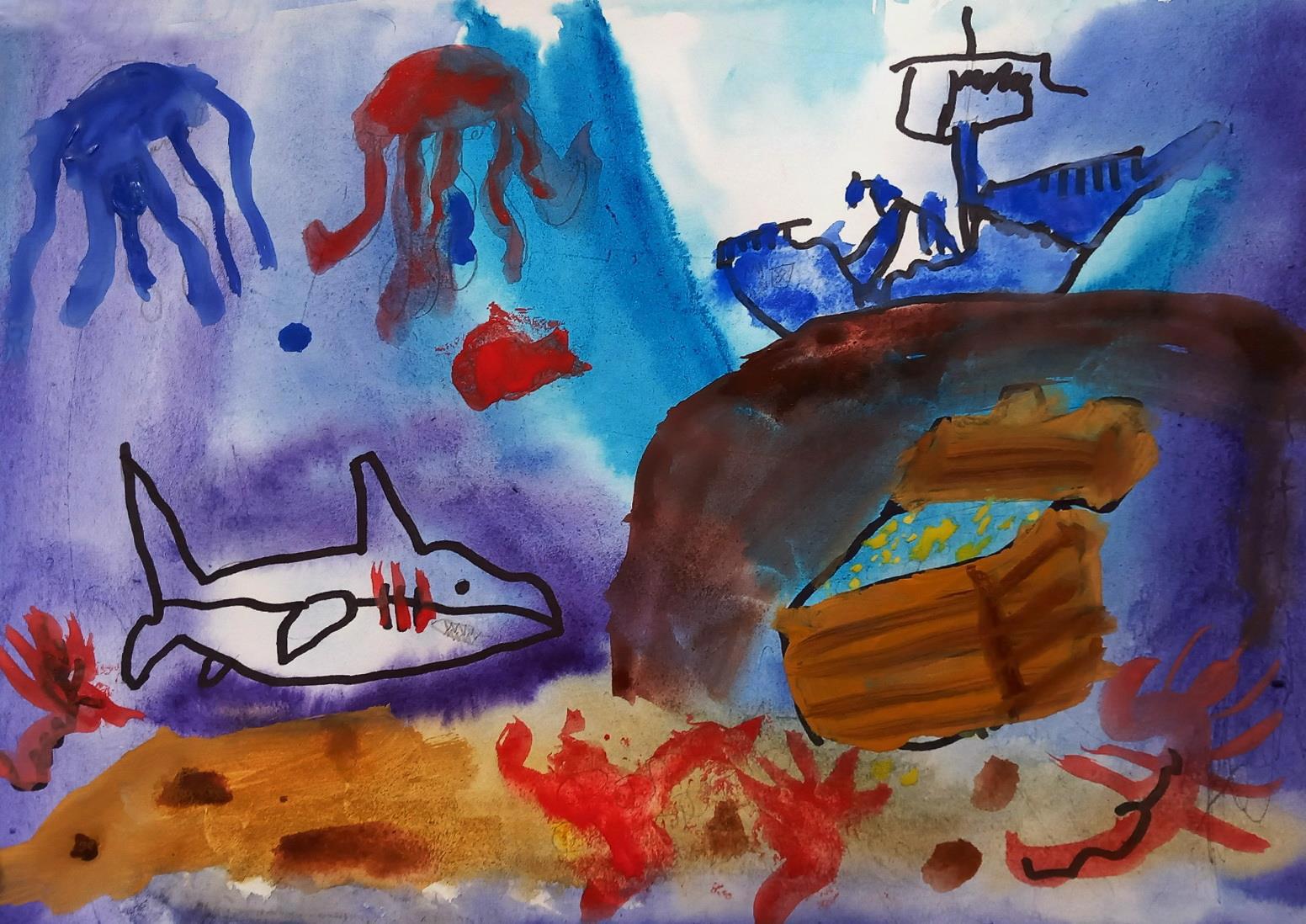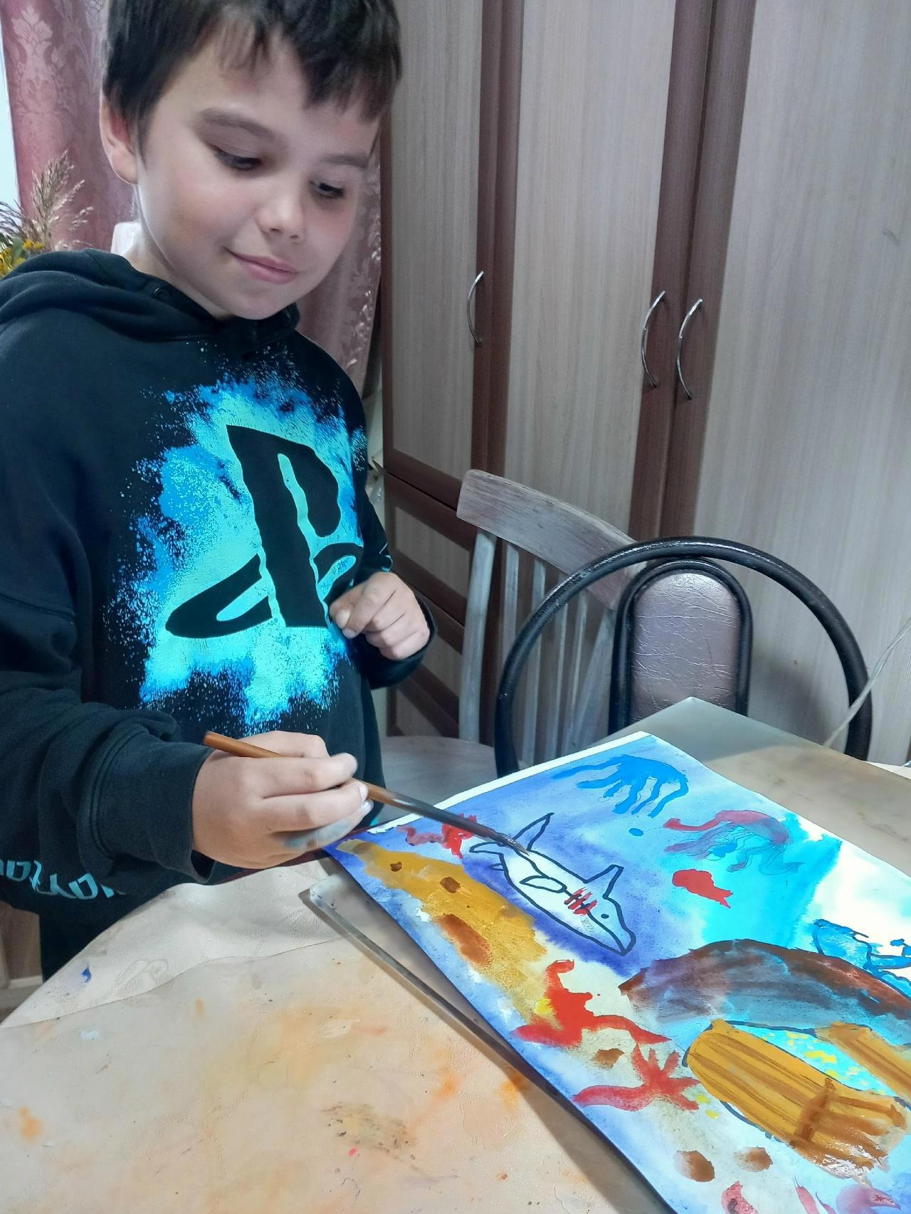 Автор: Ольга ЛевоновичРебятишки ко мне ходят рисовать. Сегодня с мальчиком, который перешёл в третий класс, позанимались математикой, а потом отрывались, рисовали подводный мир маркером, акварелью, гуашью. Я свою картинку рисовала, мой подопечный свою. Какое это удовольствие!