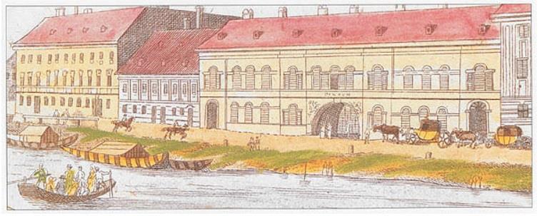 Вена, здание "Купален Дианы" с жилыми помещениями, 1806 год. Дом № 9 в Леопольдштадте на Дунайском канале (дом с аркой).