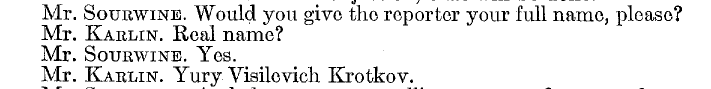 Ба, да это же наш Юра! Юра Кротков! Драматург, сценарист, член Союзов кинематографистов, театральных деятелей, ЛИТО, вхожий в дом Пастернака, на близкой ноге с Сергеями Михалковым и Бондарчуком и знакомый всей московской творческой тусовке 50-60-х годов! Как же его, горемычного, занесло прямиком во вражеское логово? (допрос проходит в комнате 302 здания Сената США). Как-как? Вот так: Кротков - человек свой, проверенный - в августе 1963 поехал в Англию собирать материалы для фильма о Ленине, что называется, "по ленинским местам", а возвращаться в СССР и писать сценарий об Ильиче, заявка на который уже была ему оплачена, испугался. А теперь серьезно. Информация, которую он передал секретной службе Великобритании показалась ей настолько интересной, что вскоре в Лондон из США вылетел тот самый "адвокат" Соувайн, который и через 6 лет будет задавать Кроткову те же самые вопросы, на что тот будет отвечать: "я же уже говорил вам об этом на нашей прошлой встрече в Лондоне". Кротков, наивная душа, полагал, что у фэбээровца плохо с памятью, - ни хрена подобного: американцы, как и все опера на свете, раз за разом проверяли достоверность его легенды (при параноике Энглтоне во всех перебежчиках им виделись хитрые подставы КГБ).