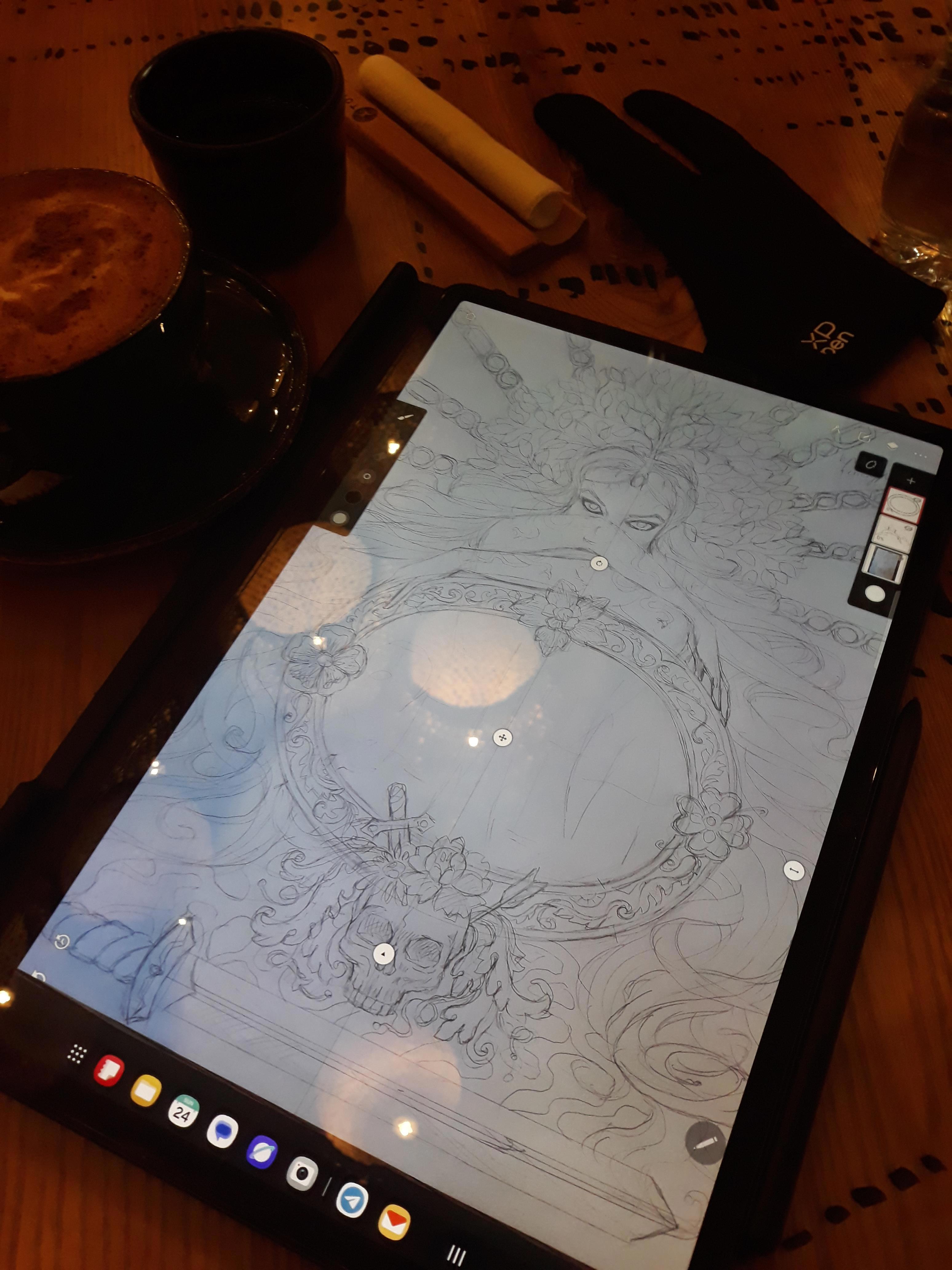 Автор: Вера ПетрукРаботаю над новой обложкой к "Дэйре" (роман переписываю в связи с новой цензурой, заодно решила поменять обложку). Скетч готов, осталось не испортить идею на стадии покраски. Скоро также закончу правки текста и выложу отредактированный вариант (сейчас книга убрана в "черновики").