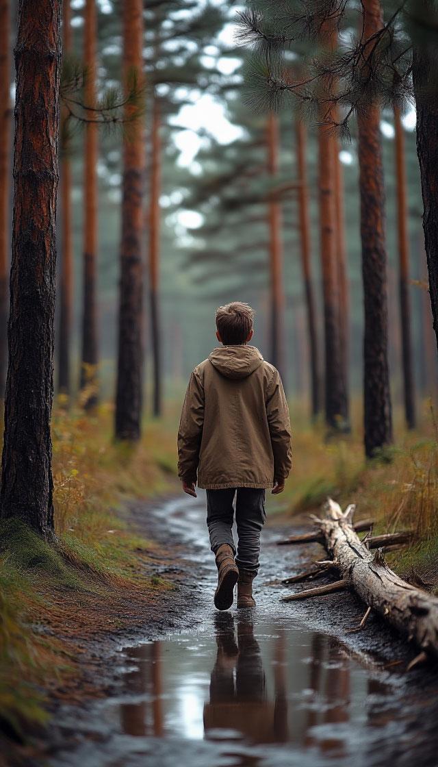 Тропинка петляла между деревьями, то сужаясь до едва заметной тропки, то расширяясь в подобие дорожки. Артём шёл уверенно, будто знал каждую кочку, каждый корень, но время от времени его взгляд скользил по сторонам — не тревожно, скорее привычно, как будто проверял, всё ли на своих местах.
