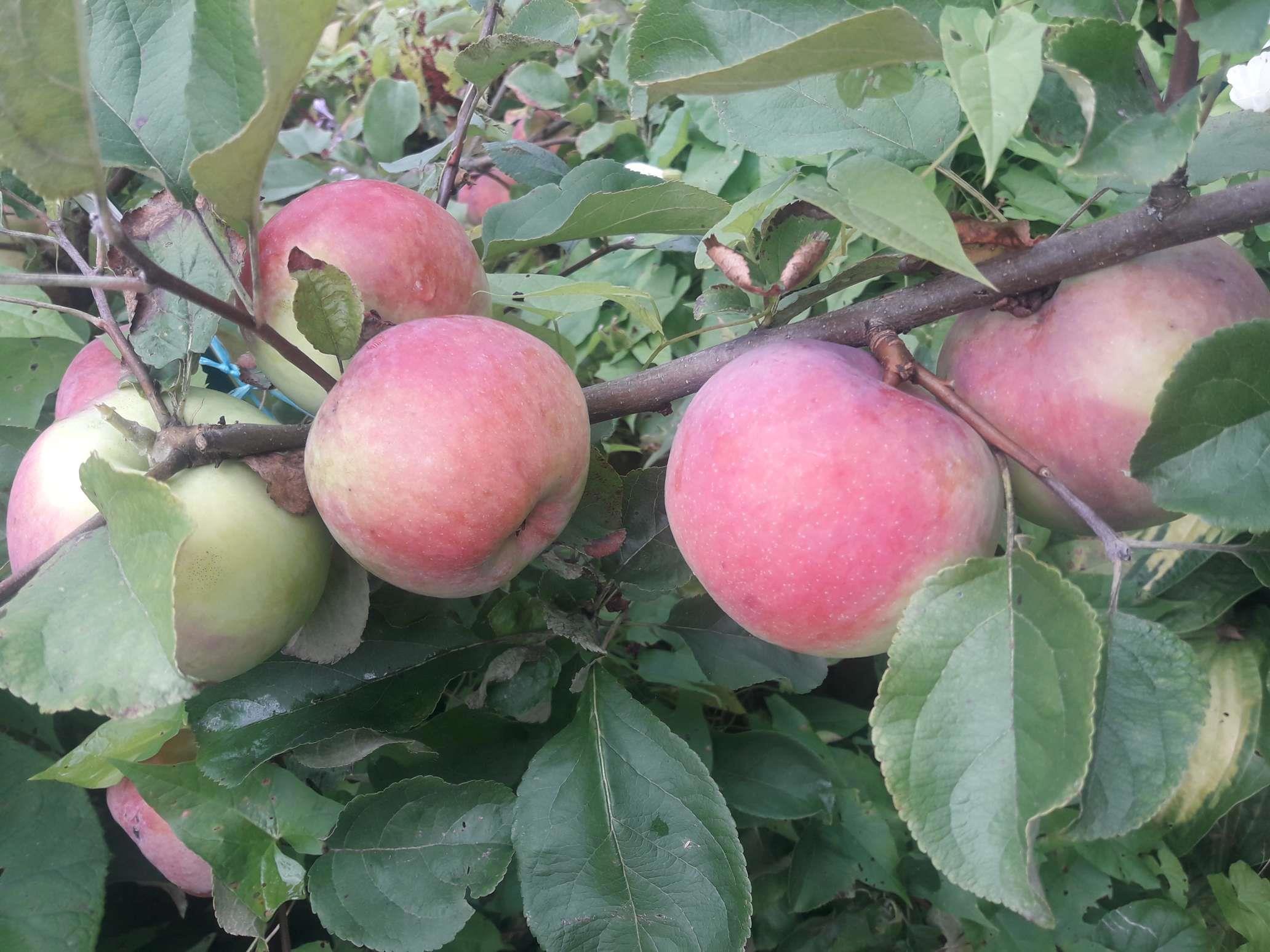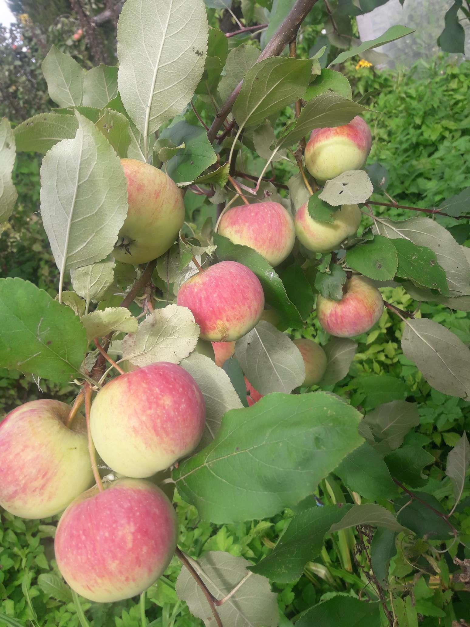 Ну а уже ближе к вечеру спотыкаюсь о фотки Ари в тг. Ари теперь тоже яблонесажатель:) И тут моя садоводческая душа не выдержала (ну а как - я ж даже лекции когда-то читал для широкой публики) и полезла с советами:) А еще я обещал фотки. Ну вот фотки. Брянское и Родниковая на подвое 54-118. Чуть выше меня ростом в семь лет. А нагрузка сумасшедшая - ветви свисают водопадами. Кило по 30 будет с дерева. Если с корнями не