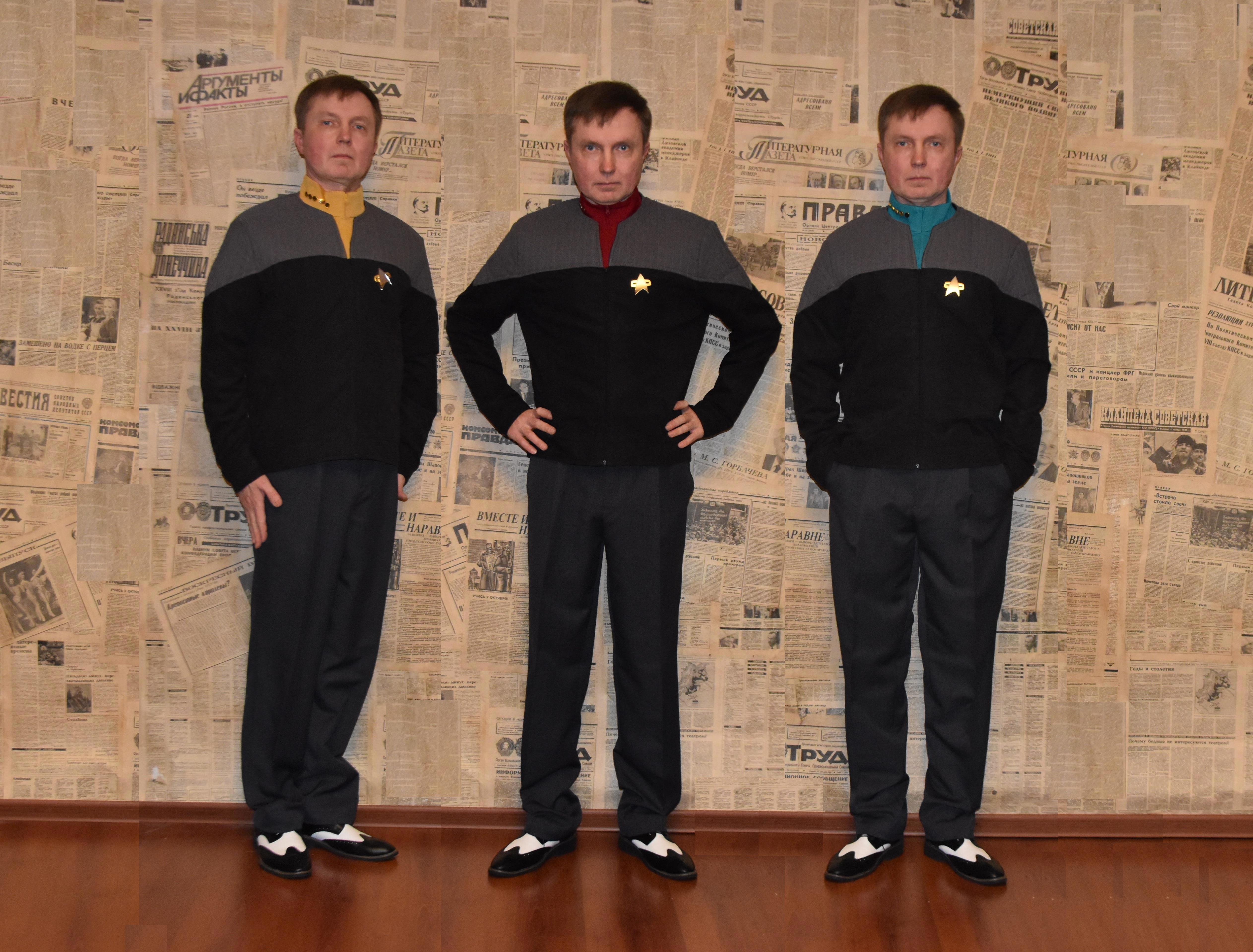 Если говорить не о писателях с читателями, а о косплее, то буду вот в трёх этих костюмах СтарТрека (первое фото).