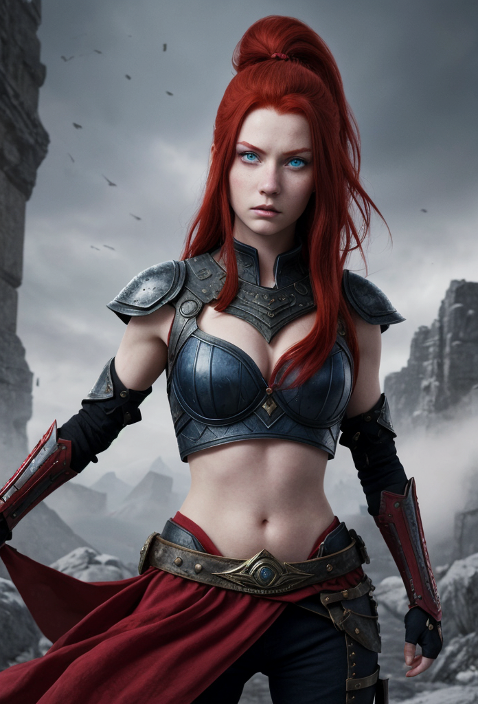 В общем, нагенерил несколько вариаций одной из героинь цикла "Тьма и Свет" - повзрослевшую принцессу Зирани Дан-Альнайд. То, как она, возможно, выглядела бы в четвёртом томе цикла