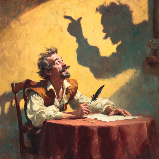 Среди них была нейро иллюстрация на тему "Тень поэта"