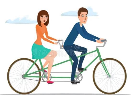 Лена уже подходила к своему дому , когда из за угла вышел парень со смутно знакомым лицом, вёзший «за рога» странный велосипед с двумя седлами и двумя рулями. Когда он улыбнувшись спросил: «Девушка, вас подвести?» - она узнала студента с параллельного потока и в этот день она научилась кататься на велосипеде.