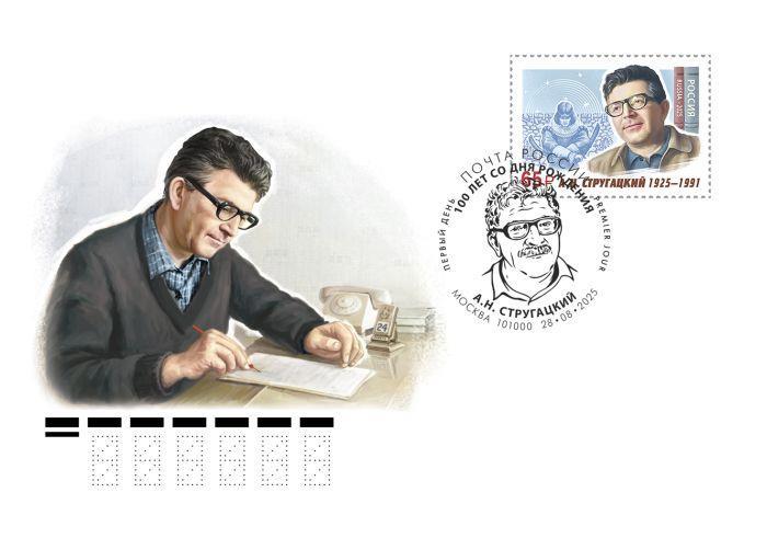 Марка, конверт и штемпель гашения к юбилею писателя. Художник-дизайнер В. Хабловский