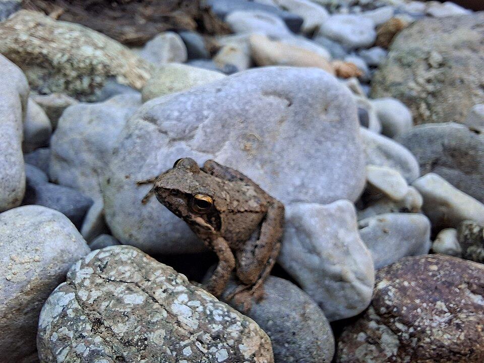 …глянул на Луку. А он там травинкой перед собой шерудил. Пригляделся — лягушечку щекочет! Такую небольшую, тоже маскировочного окраса — коричневатую с переходом к светлому пузу.