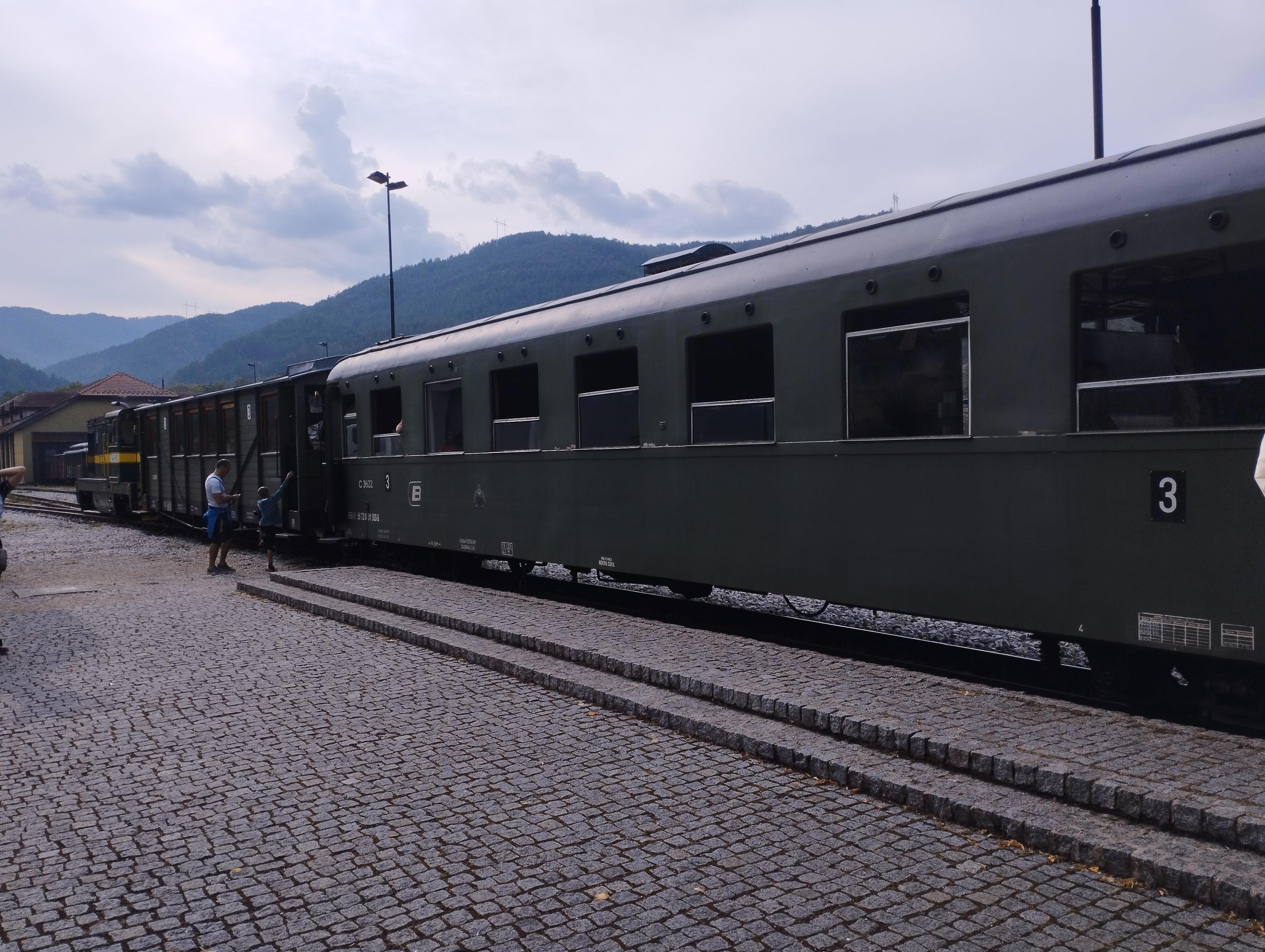 Это поезд знаменитой «Шагранской осмицы» — узкоколейки между Мокра-Горой и Шаграном по извилистому маршруту с перепадом высот в 300 метров. Примерно 60 км, 5 мостов и 22 тоннеля. Нынче на ней катают туристов.
