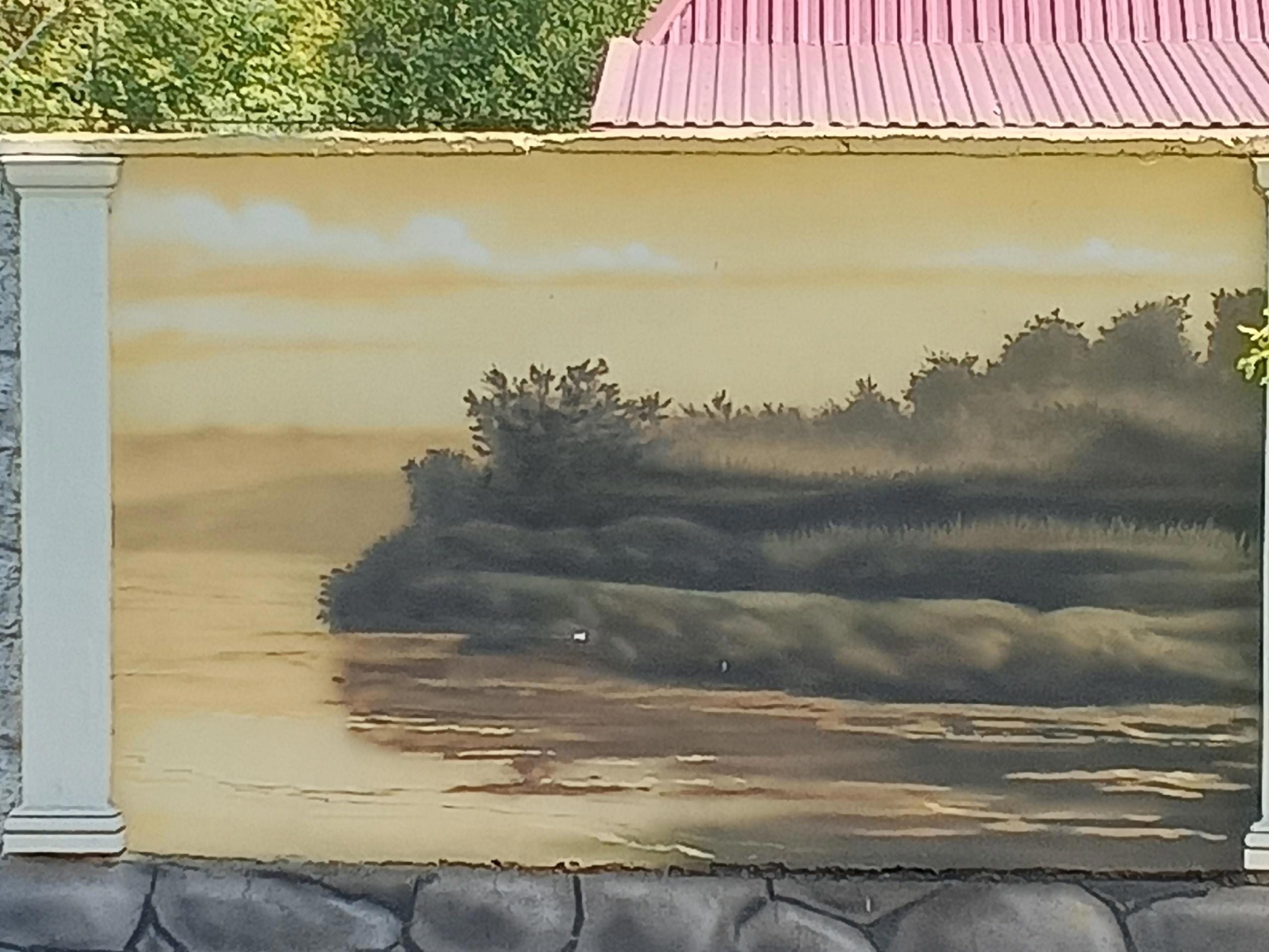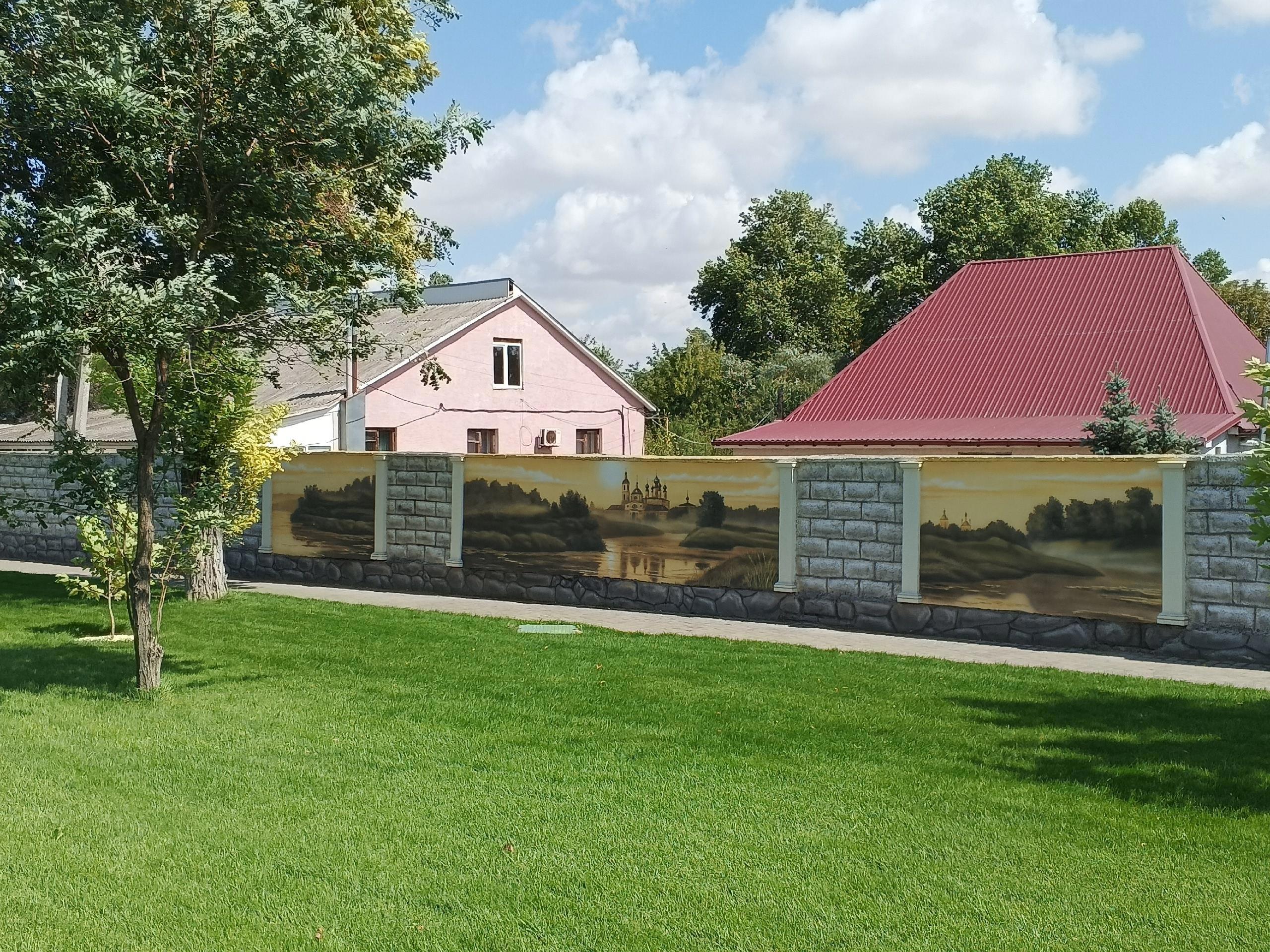 Естественно я туту же рванула к картинам... Что и говорить, крутилась вокруг я почти полчаса, но для того, чтобы сфотографировать их как следует пришлось выходить на дорогу. Что сказать. В Гвардейском святые водители. Увидев даму фотографирующую забор они сбрасывают скорость и деликатно объезжают фотографа. Проверено на личном опыте... Картины явно писал местный художник. К сожалению он не оставил подписей.