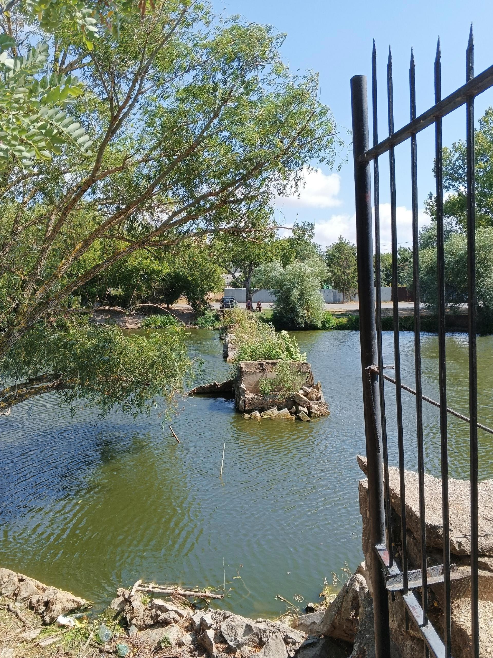 А если обойти храм по кругу, то мы попадаем к уютной заводи образованной изгибом Салгира, где сейчас с большим удовольствием ловят рыбу местные жители. А так же можно увидеть остатки моста через реку.