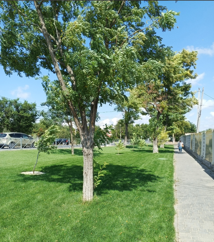 Зелёные газоны и роспись. Фото Галины Малышевой.