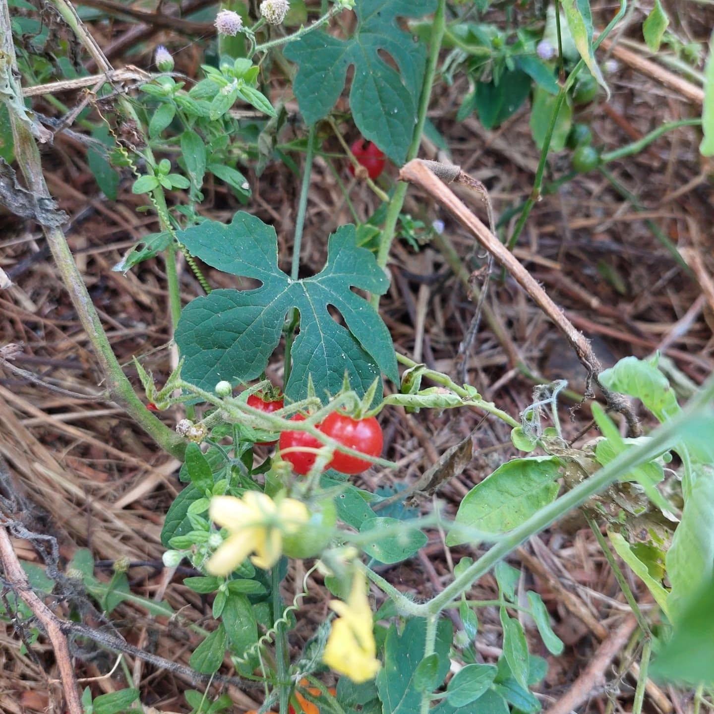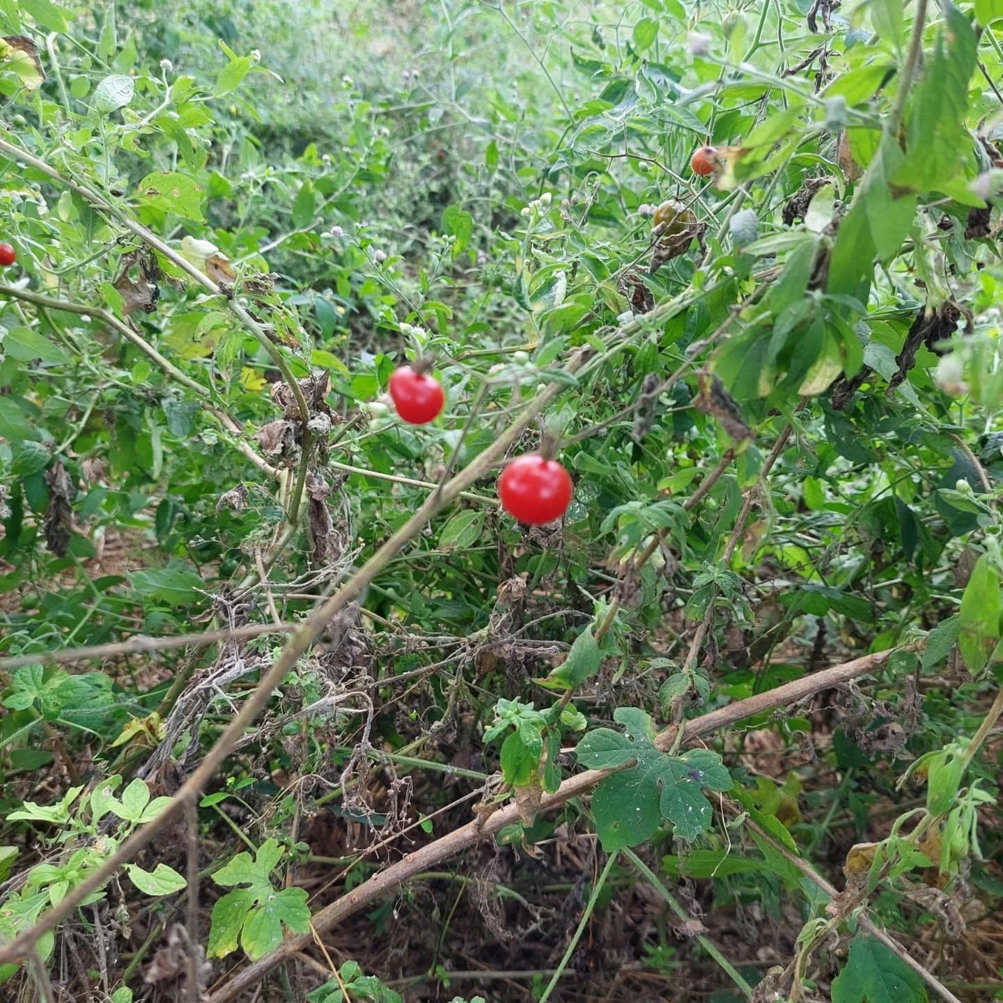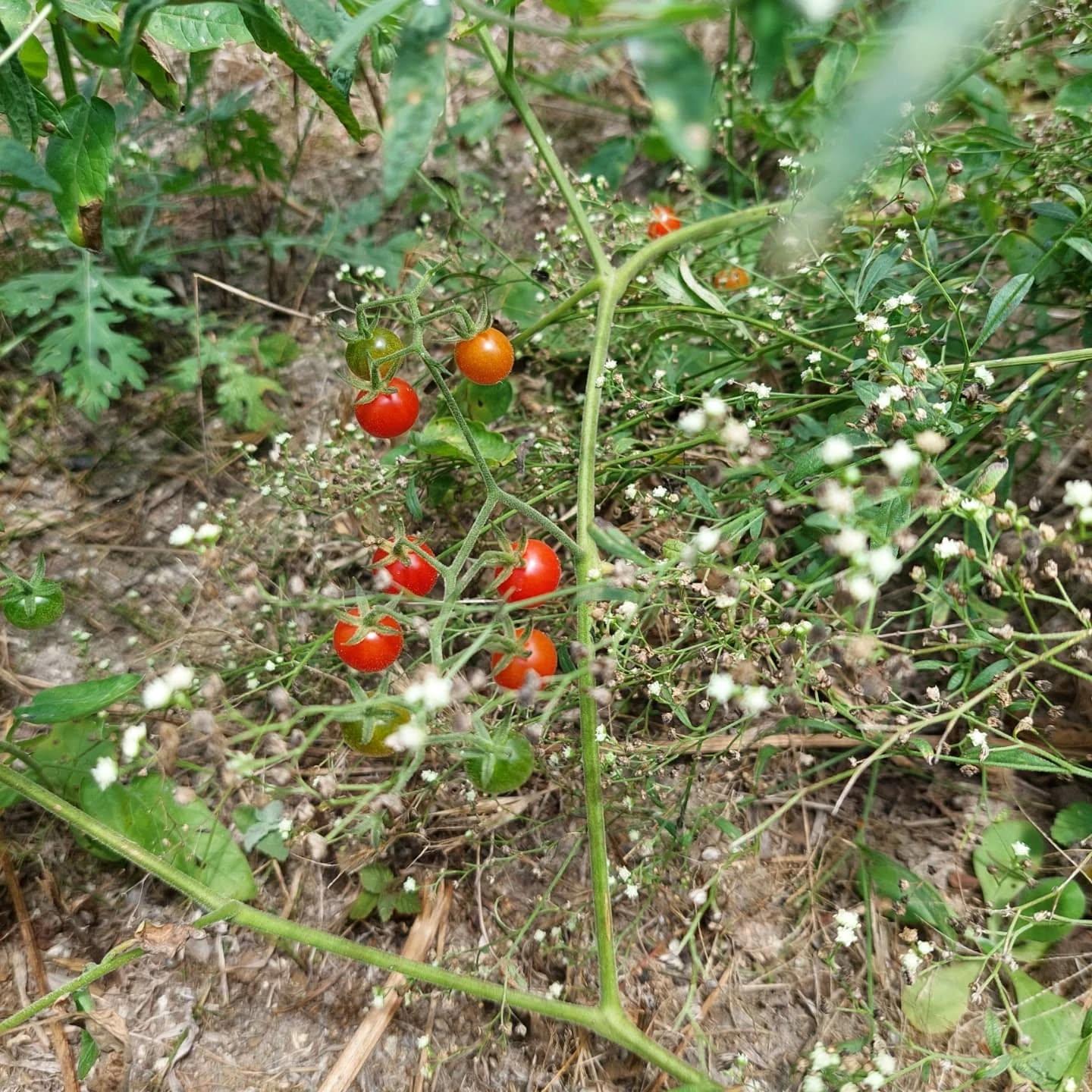 Помидорки дикие, самочинно вырастающие. Размером... с черную смородину. )))