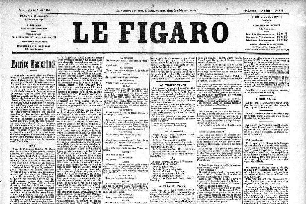 «Я ничего не знаю о М. Морисе Метерлинке. Не знаю, откуда он и кто. Стар или молод, богат или беден, не знаю. Знаю только, нет человека, более неизвестного, чем он; знаю так же, что он создал шедевр, но не просто нечто такое, к чему приклеивают ярлык шедевра как бы авансом, и что публикуется каждый день нашими юными мэтрами, нечто, воспеваемое ныне на все лады под визгливые лиры — или скорее под новенькие визгливые флейты, но удивительный, чистый, вечный шедевр, шедевр, которого одного хватит, чтобы обессмертить имя своего творца, шедевр, заставивший благословить это имя всех изголодавшихся по прекрасному и великому; шедевр, о котором мечтают благородные и измученные творцы в минуты высшего душевного напряжения, не в состоянии создать ничего подобного. Словом, М. Морис Метерлинк одарил нас самым гениальным произведением современности, самым необыкновенным, но так же и наивнейшим из всех, и пьеса его — осмелюсь ли сказать? — превосходит по красоте всё, что есть самого прекрасного в Шекспире. Произведение М. Мориса Метерлинка называется «Принцесса Мален». Есть ли в этом мире хотя бы два десятка знающих об авторе? Сомневаюсь».