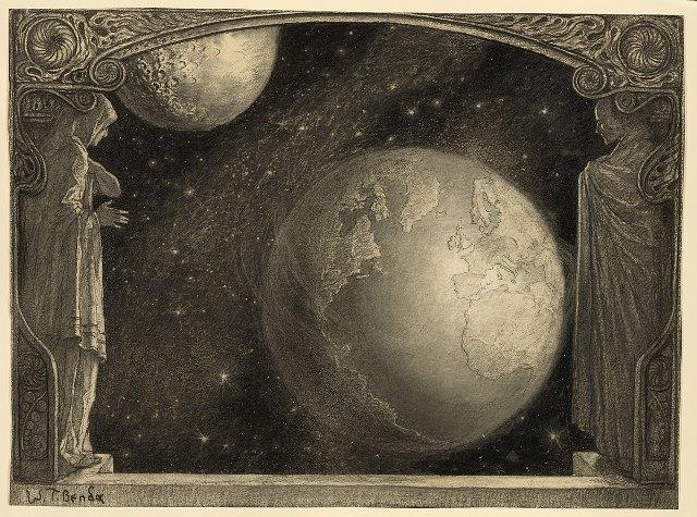 Попалась мне в сети красивая картинка: автор - Владислав Бенда, "Вид на Землю и Млечный путь с Луны", 1918.