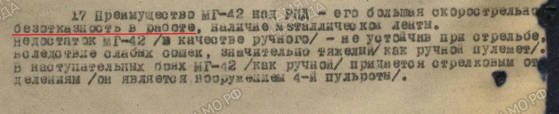 Когда МГ42 начинают ругать за высокую скорострельность и, вследствие этого низкую точность стрельбы очередями, возникает вопрос - а с чем сравниваем? Если с ДП, то напомню, в наставлении по нему рекомендуется вести огонь короткими очередями по 3-5 выстрелов (для МГ это 5-7 на сошках и до 70 на станке). Если с Максимом - напомню, что на станке МГ весит 32 кг, а Максим более 60 (по воспоминаниям моего деда, который как раз с максимос воевал, передвигаться с ним под огнем задача крайне непростая, да и без огня удовольствие сомнительное).