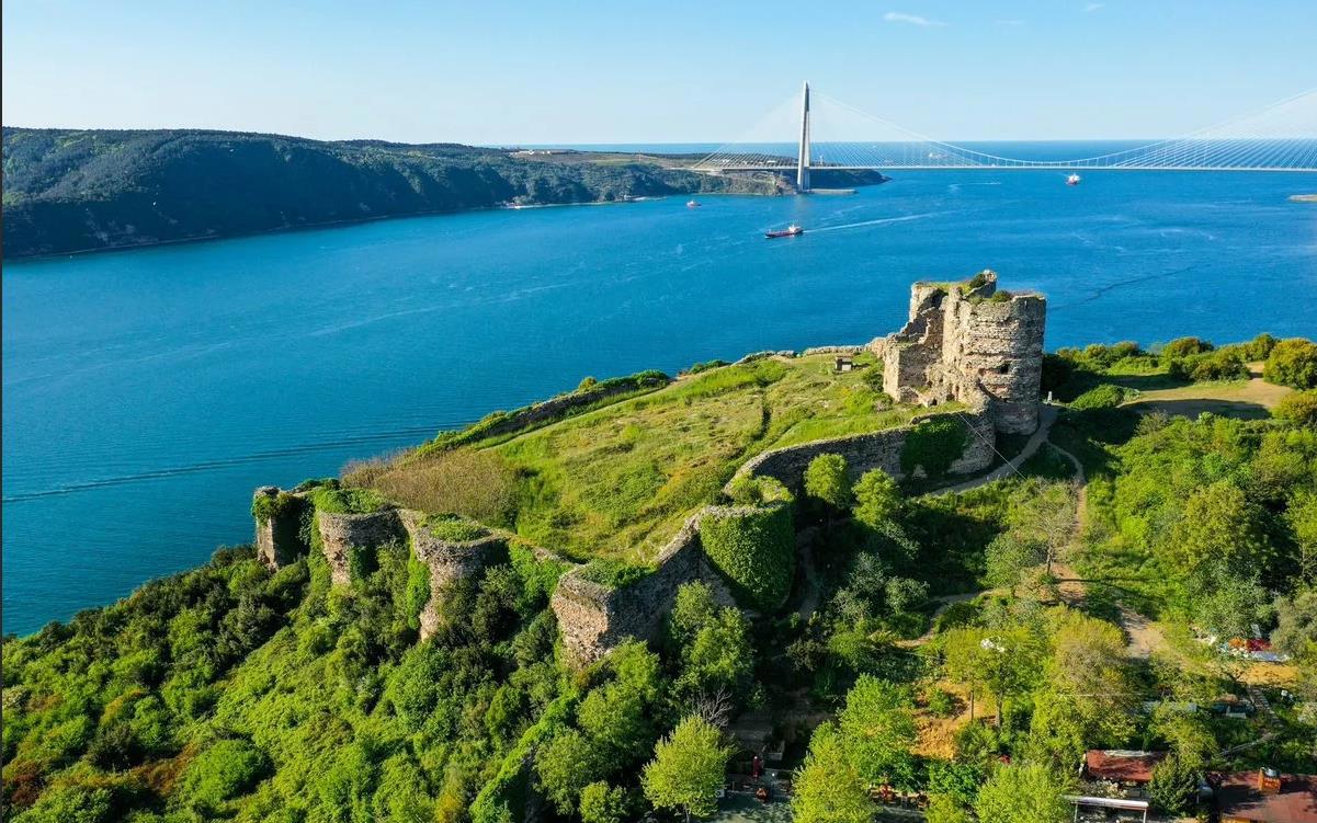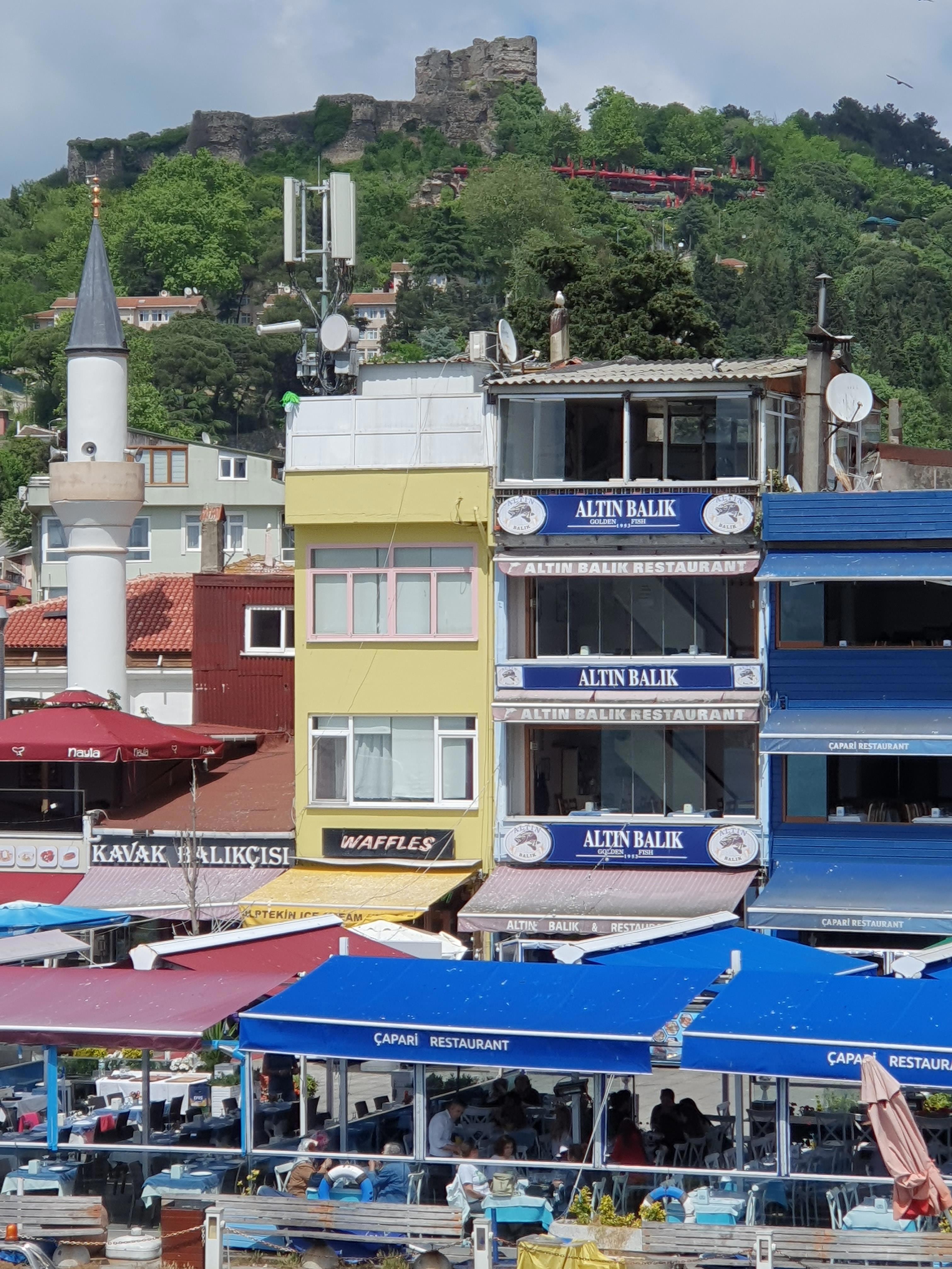 А это вид на крепость Иерон с воды. Крепость находится в последней трети Босфора с азиатской стороны. В 10в. (время, о котором пишу я) здесь был таможенный пост, взимавший пошлину 10% со всех товаров, перевозимых с Черного моря к Константинополю. Сохранившиеся до наших дней развалины - это остатки крепости, построенной в 14в. Однако укрепления в этом стратегическом месте существовали с античных времён.