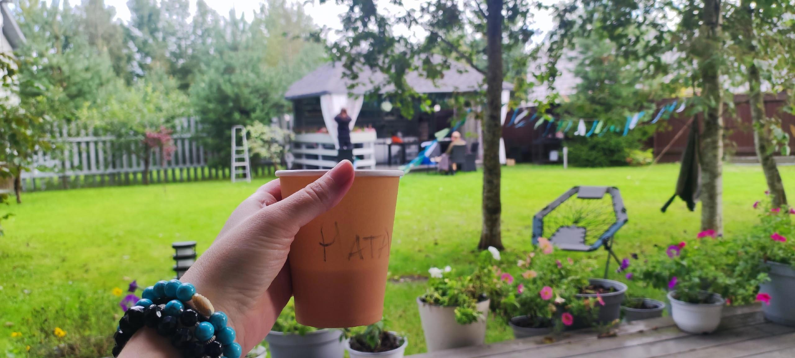 А пока шли съемки других сцен я попивала кофеек из подписанного стаканчика)