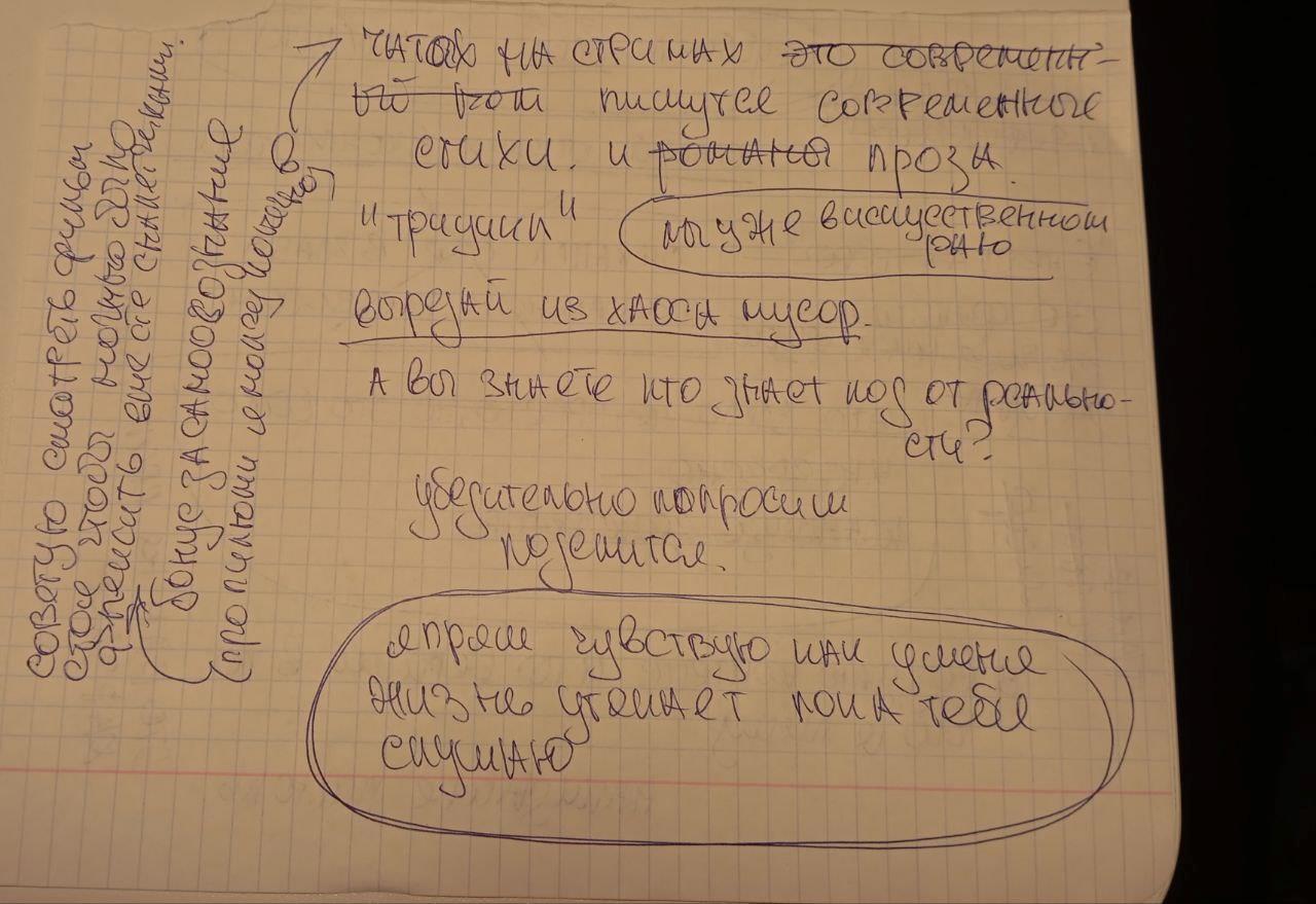 (так ты уплываешь от плохих мыслей, от нереализации, от ощущений, которые ты не хочешь принимать и называть своими, от злости которой ты называешь праведным гневом, от голых людей, которые неприлично голые и говорят тебе что ты неприлично одет, а ведь тебе холодно, у тебя стучат зубы...)