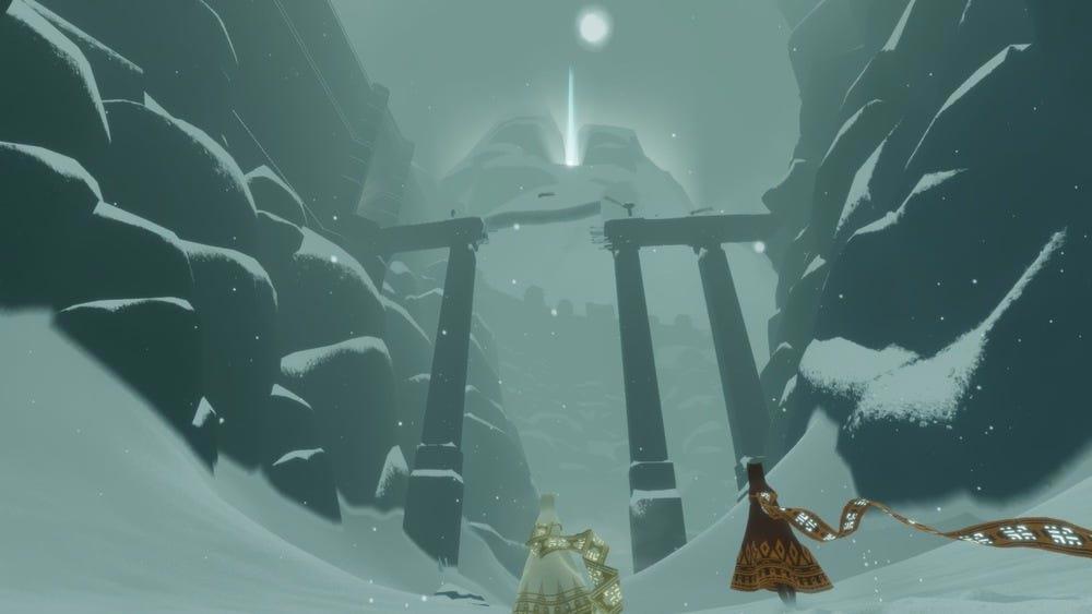 Первой в списке будет игра Journey из 2012-го года. Игра зацепила своей атмосферой, сюжетом без единого слова и общей необычностью геймплея. Безымянный персонаж с целью, открывающейся только в самом конце.