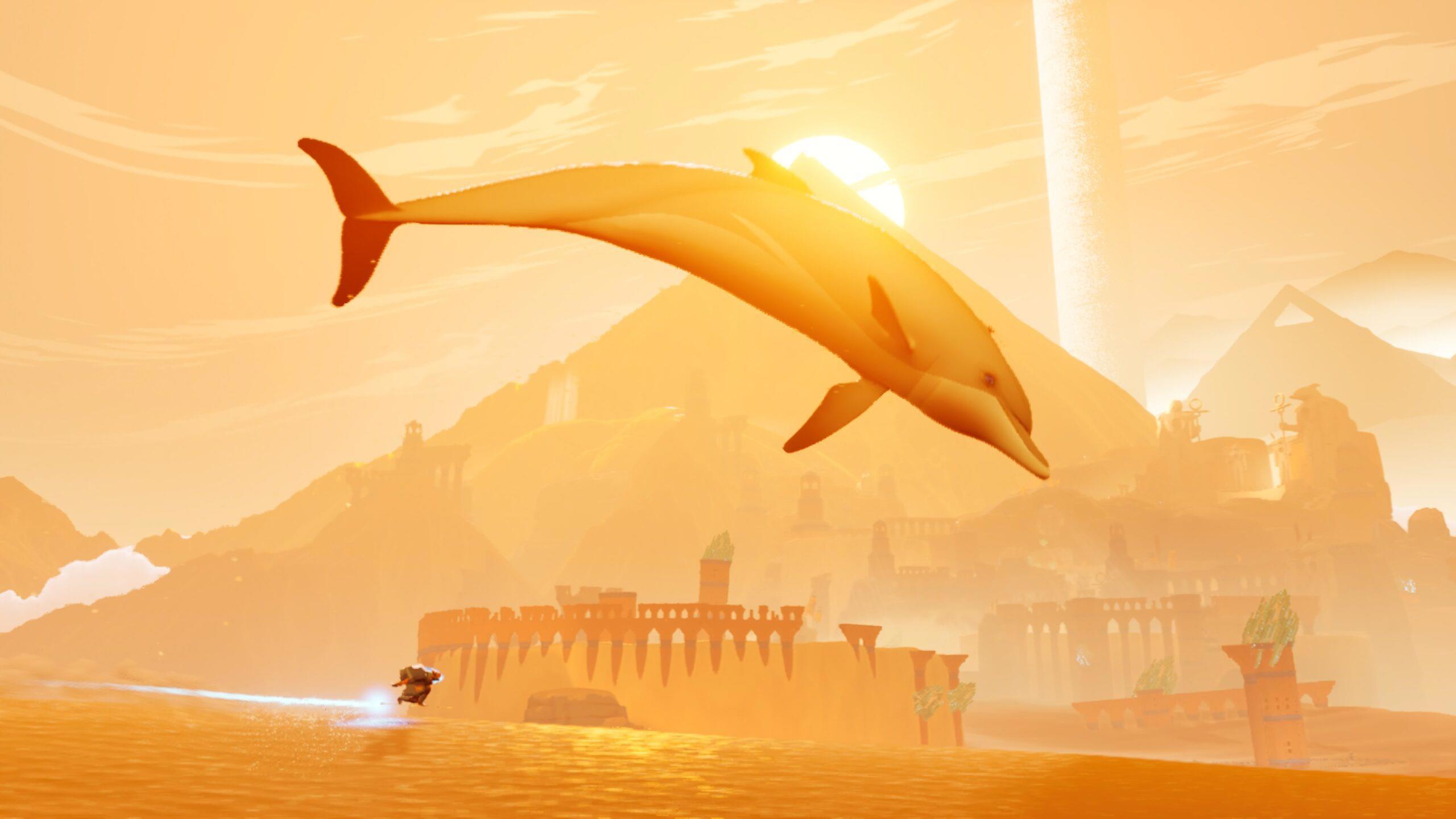 Появившийся не так давно в 2025 Sword of the Sea добавил динамики и экстрима в данный жанр игр. Сама игра напоминает смесь из Journey и Abzu, с героем, сёрфящем на неком волшебном мече сквозь этот пустынный мир, где небо наполнено рыбами, медузами, дельфинами, скатами, касатками и прочей морской живностью.