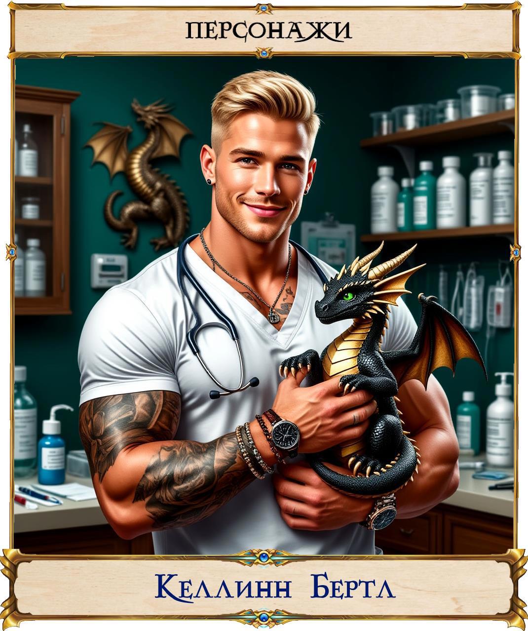 В моем цикле «Слияние» тоже есть ветеринар, знакомьтесь: Келлинн Бертл. Блогер, спортсмен, красавчик и большой профессионал своего дела. А его история в романе «О дивный чуждый мир» начинается с того, что в лабораторию Кэла попадает крохотный мертвый дракон. И заверте...