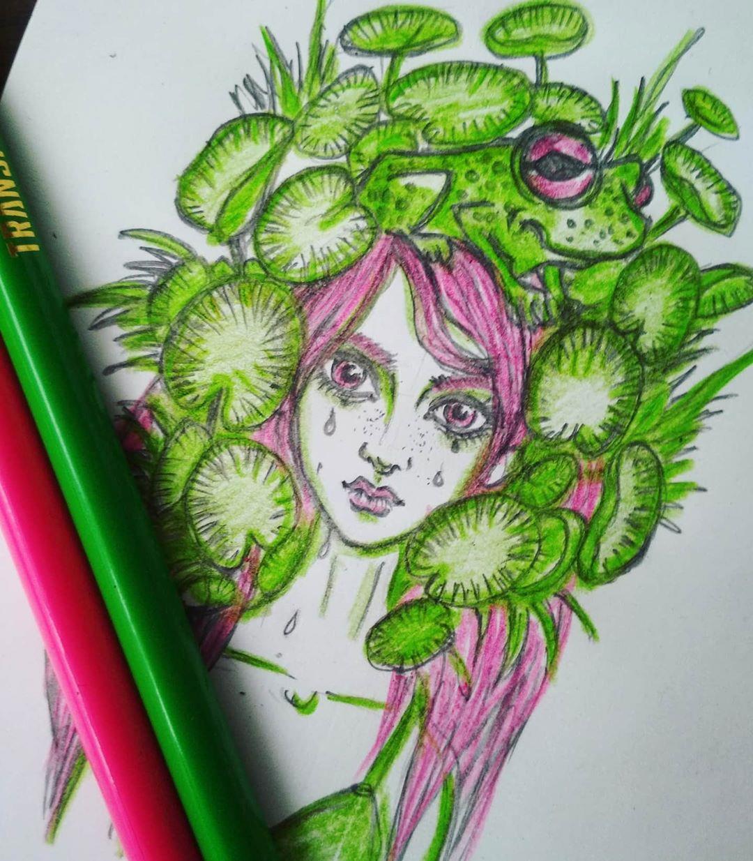 Автор: Мария ЗаболотскаяБолотная принцесса. Набросок сделан в рамках очередного инстаграмовского челленджа #drawthisinyourstyle