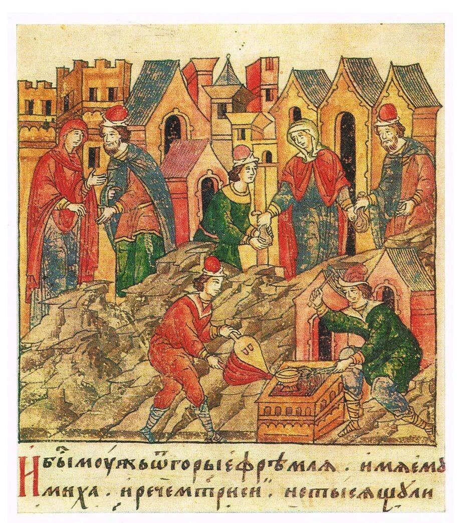 Даже каллиграфически написанные тексты. Вот вам картинка из Лицевого свода времен Ивана Грозного. Хотя бы две строчки подписи прочтете?
