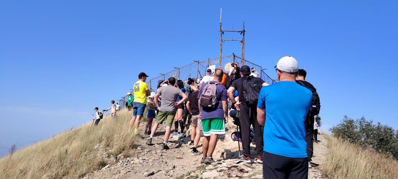 В 8 утра они были на месте у подножья горы в городе Лермонтов. Народу было достаточно много! Причем это были и спортсмены, и просто любители от 0,5 лет и до 80. Были молодые пары, у которых за спинами отцов в рюкзаках сидели дети от полугода до 1.6 лет. Вот такие любители экстремального отдыха!