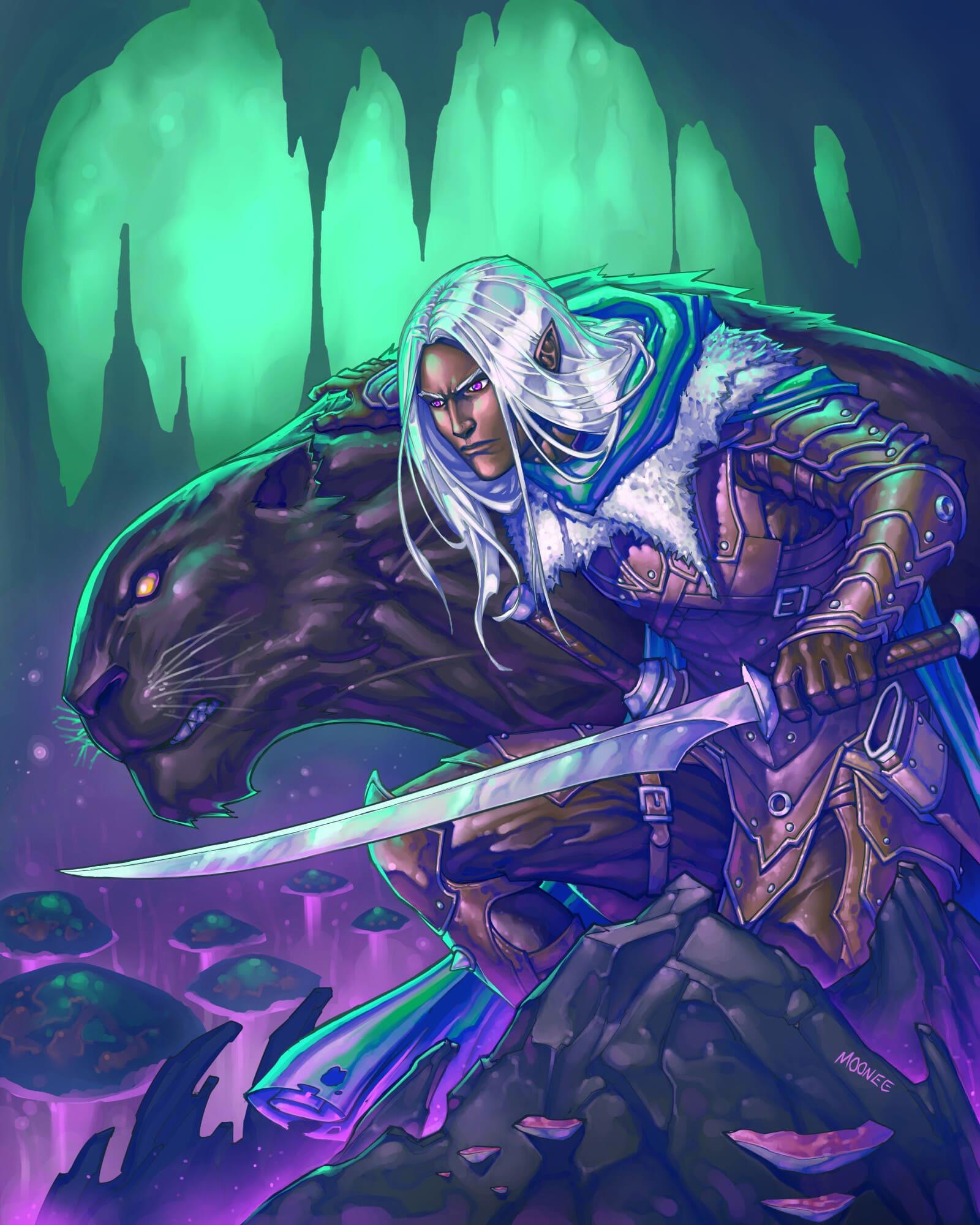 Ах да, ещё у Дзирта будет волшебная пантера, Гвенвивар, но она мелькает на других артах