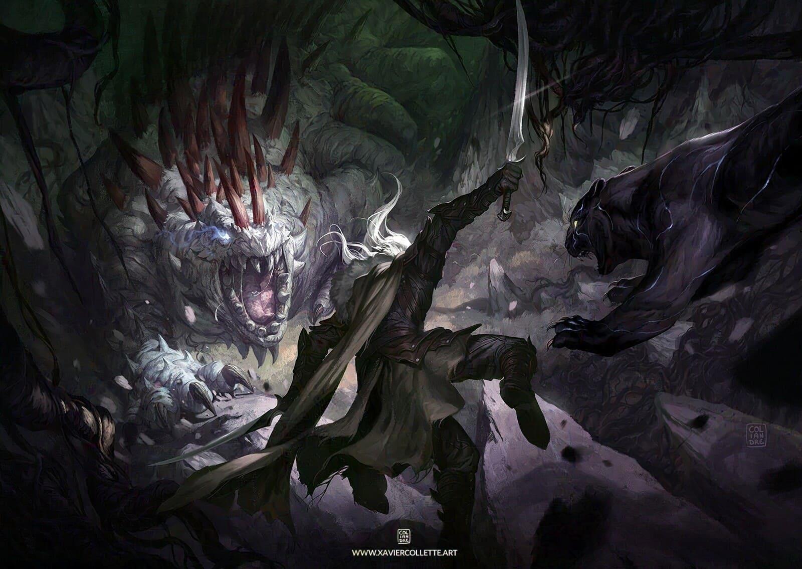 Василиск. Как раз изображено столкновение Дзирта с ним (художник: Coliandre)