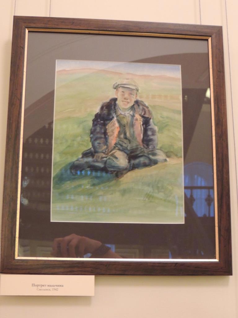 «Портрет мальчика». Парнишка лет 10-12, сидящий на зеленеющем взгорке и расслабленно улыбающийся голливудской улыбкой.