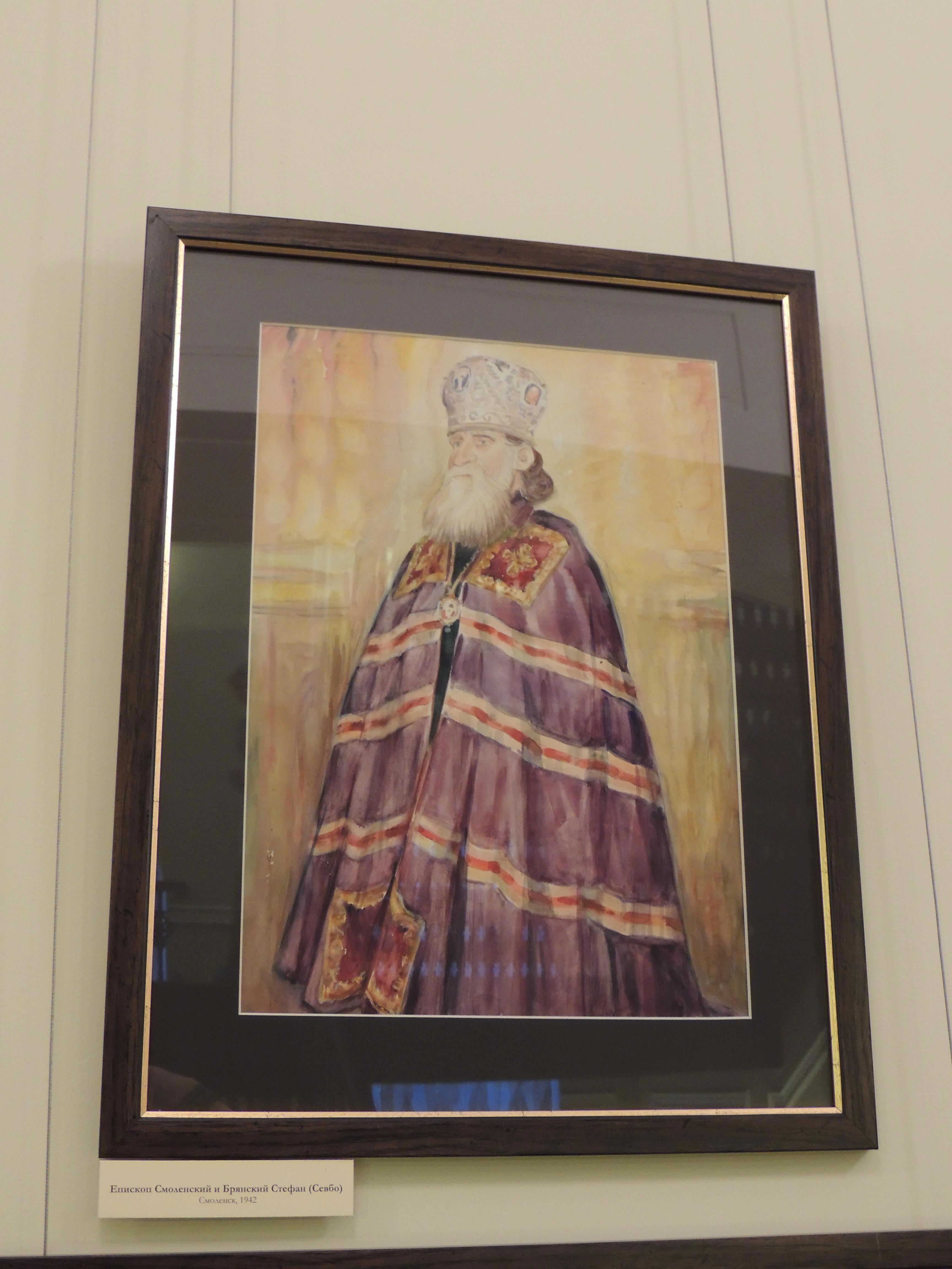 На выставке представлены портреты и епископа Стефана, и настоятеля Спасо-Окопной церкви Смоленска протоиерея Николая Домуховского. Здесь же – и их биографии.