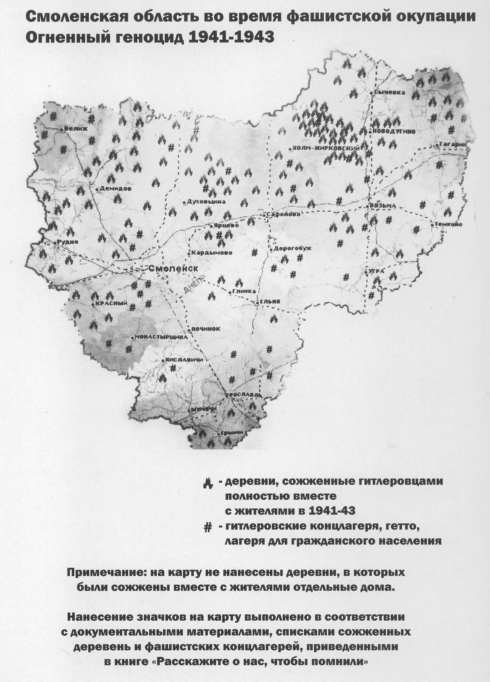 На территории Смоленской области было обнаружено свыше 300 братских могил и кладбищ, в которых покоится прах 175 тысяч воинов Советской Армии, 20 тысяч партизан, более 350 тысяч советских военнопленных и мирных жителей, расстрелянных и замученных фашистами. Только на территории Смоленска и его пригородов расположено более 80 братских могил и захоронений с останками около 135 тысяч человек.