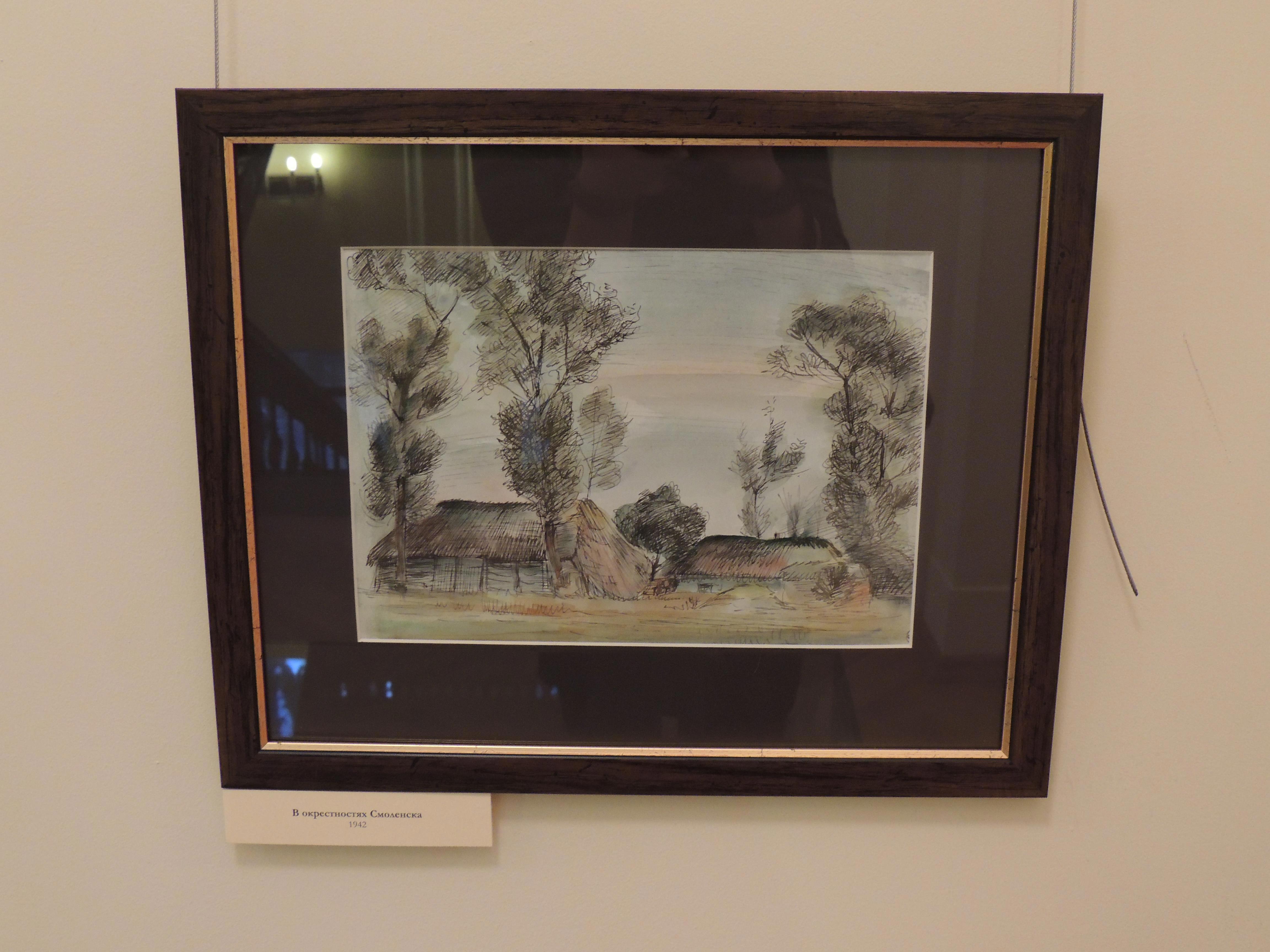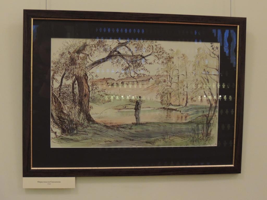 Естественно, захотелось посмотреть на оккупированный Смоленск глазами человека, который «служил в звании сержанта писарем», и обязанности которого «позволяли ему в свободное время заниматься любимым делом – этюдами, карандашными набросками, портретами, акварельной живописью и сценографией для солдатских вечеринок».