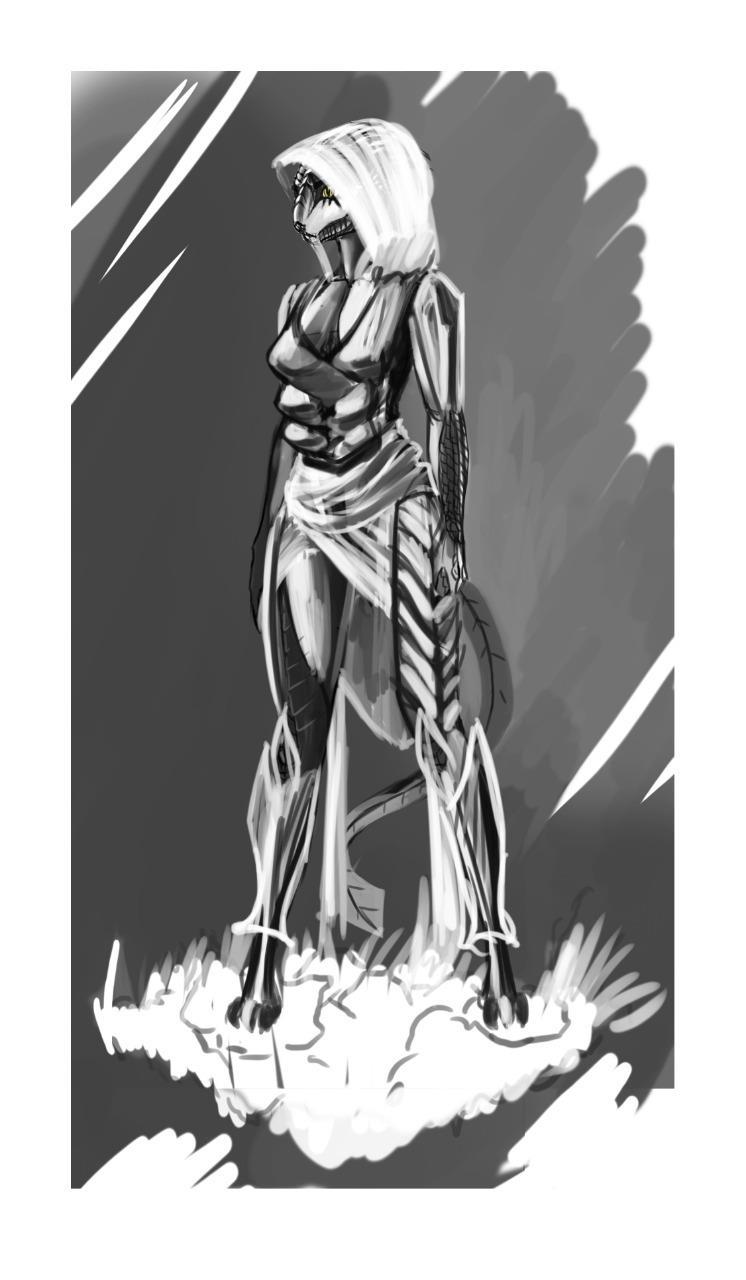 Работа над черновиком истории о тероподах. Визуализация персонажа