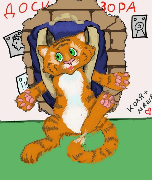 — Меня повесили на доску позора — там висели фотки двоечников и прогульщиков. А меня повесили без всяких фоток, в натуральном виде, вместе с куском классной двери! Вампирьевна прожгла своим жутким взглядом дырочку в этой деревяшке, чтобы удобнее было вешать на гвоздик, и прошипела: «Он уничтожил лицейское имущество и будет висеть тут, пока не явятся его родители!»
