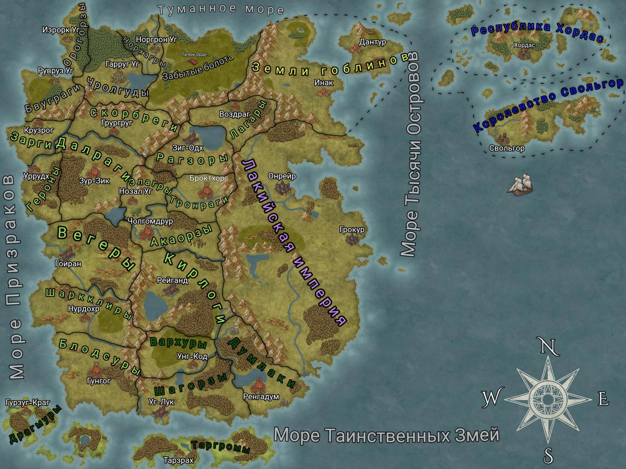 На острове проживает несколько народов разной культуры. Я нарисовал карту с границами государств и племён.