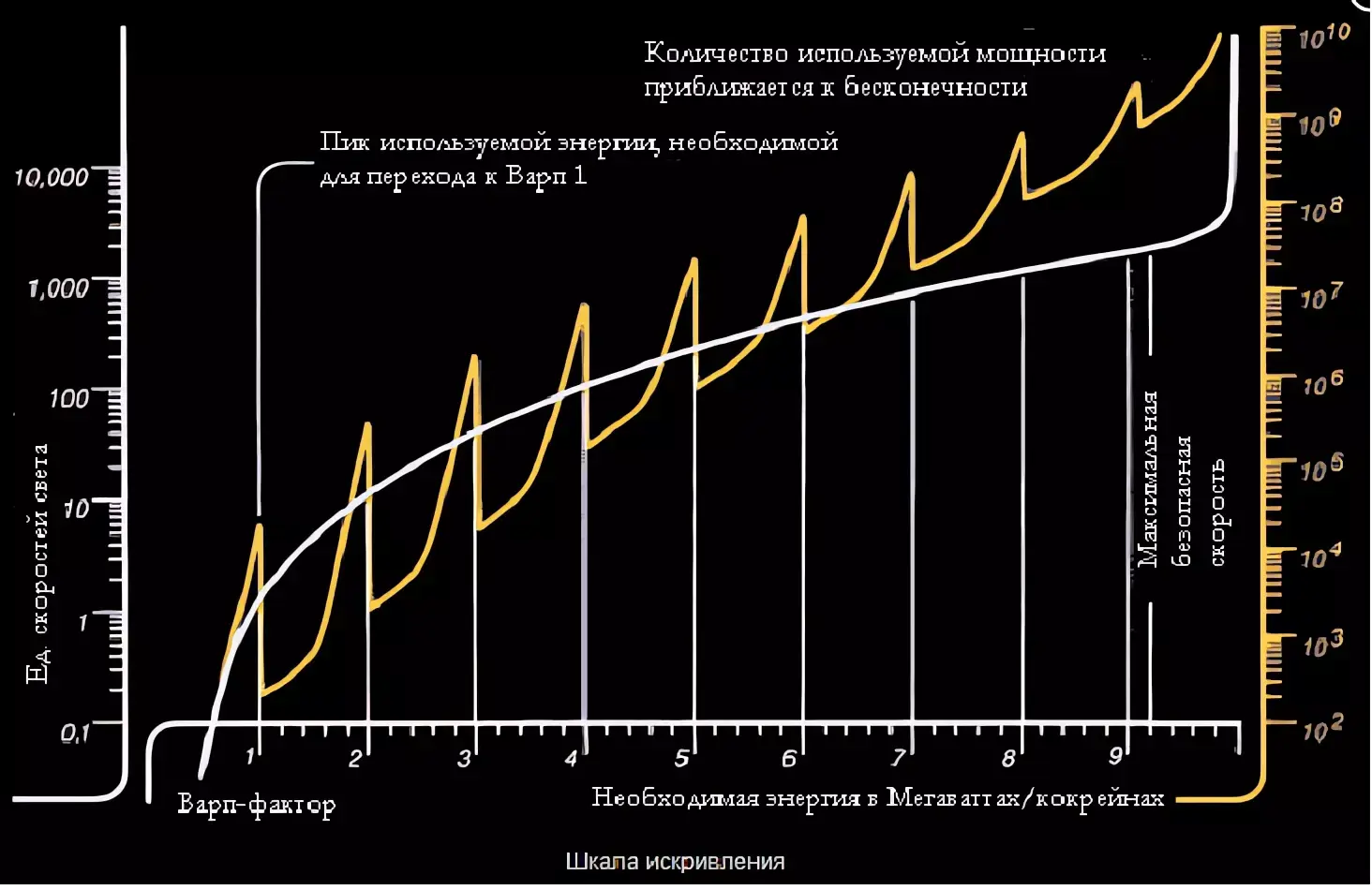 Корабль, находясь внутри этого "варп-пузыря", фактически не движется быстрее света локально, но благодаря искривлению пространства он перемещается между точками со сверхсветовой скоростью.