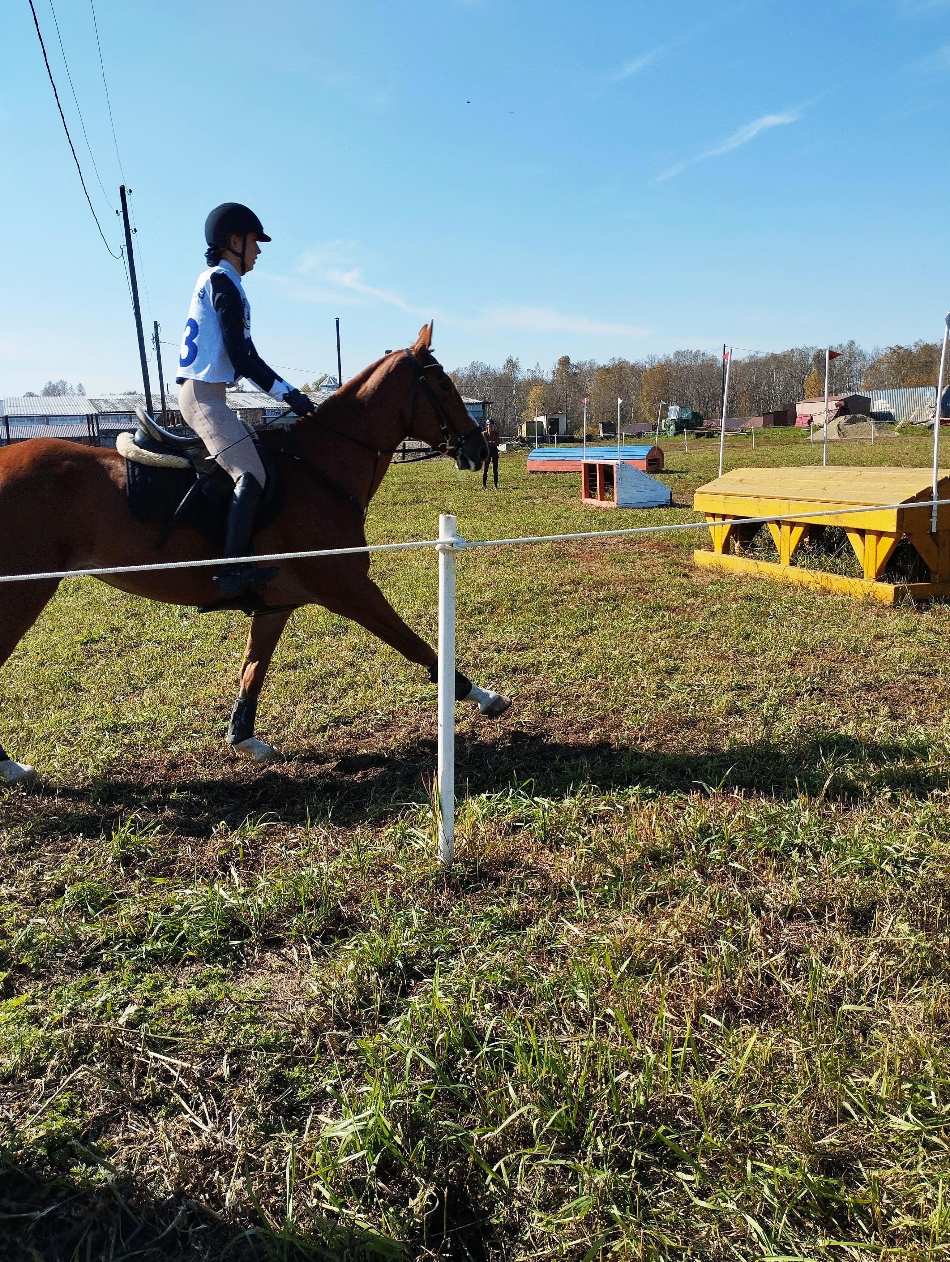 Проводилось троеборье, региональные соревнования. Манежная езда уже прошла, а нам предстояло помогать организовать конный кросс. Наездникам нужно было скакать галопом по сложному, извилистому маршруту больше четырех километров и преодолеть почти два десятка препятствий — канавы, крутые подъемы и спуски, бревна, кусты, деревянные барьеры и т. д. Причем эти барьеры «мёртвые», то есть не разрушаются, если конь их заденет. Столкновение с таким барьером часто заканчивается падением. Некоторые барьеры ставятся на пригорках или перед канавами, из-за чего лошадь не видит заранее, куда она будет приземляться после барьера. Поэтому кони для кросса должны быть смелыми, хорошо обученными и доверять своему всаднику. На каждом барьере устанавливаются флажки, и голова, шея и переднее плечо прыгающей лошади всегда должны попадать между этими флажками.