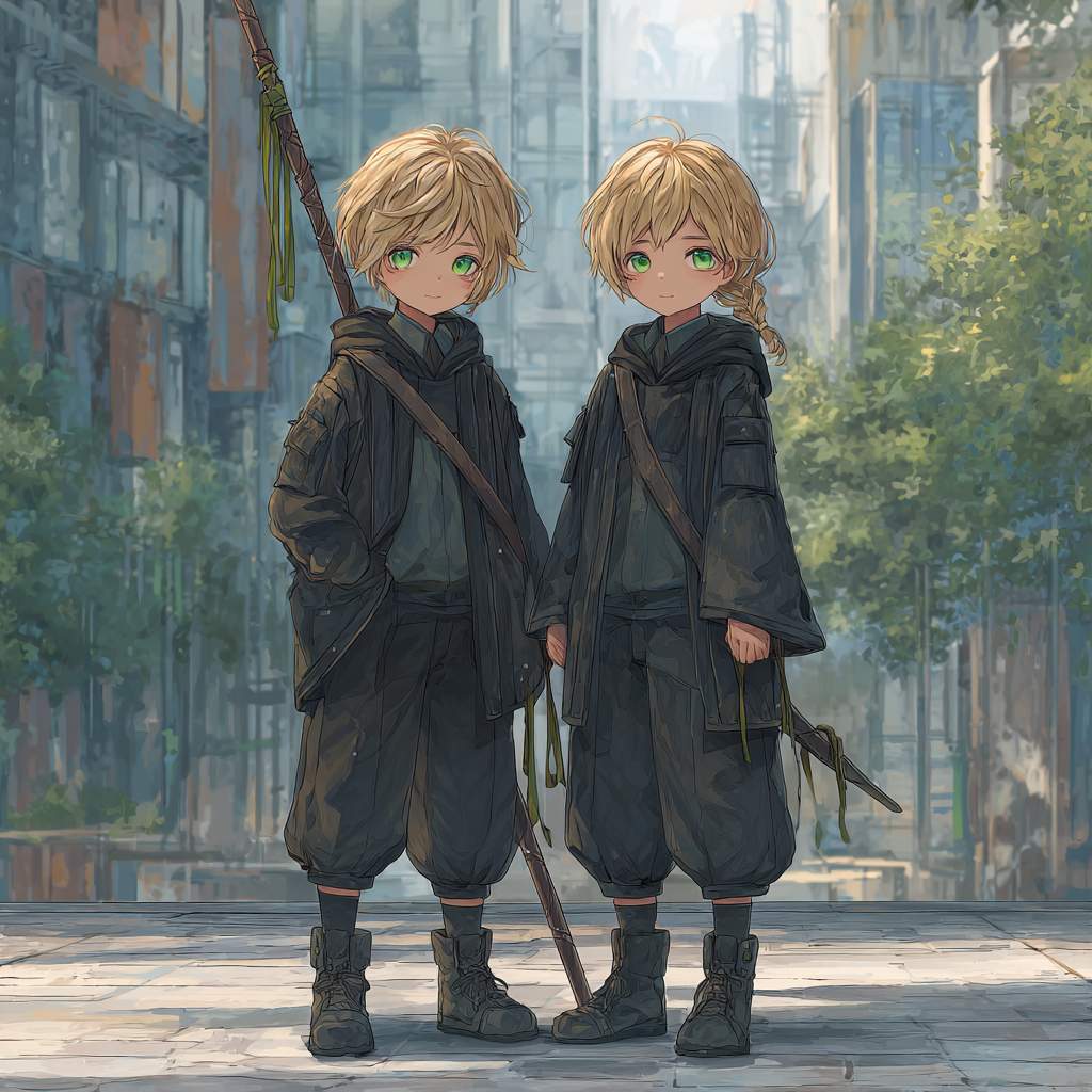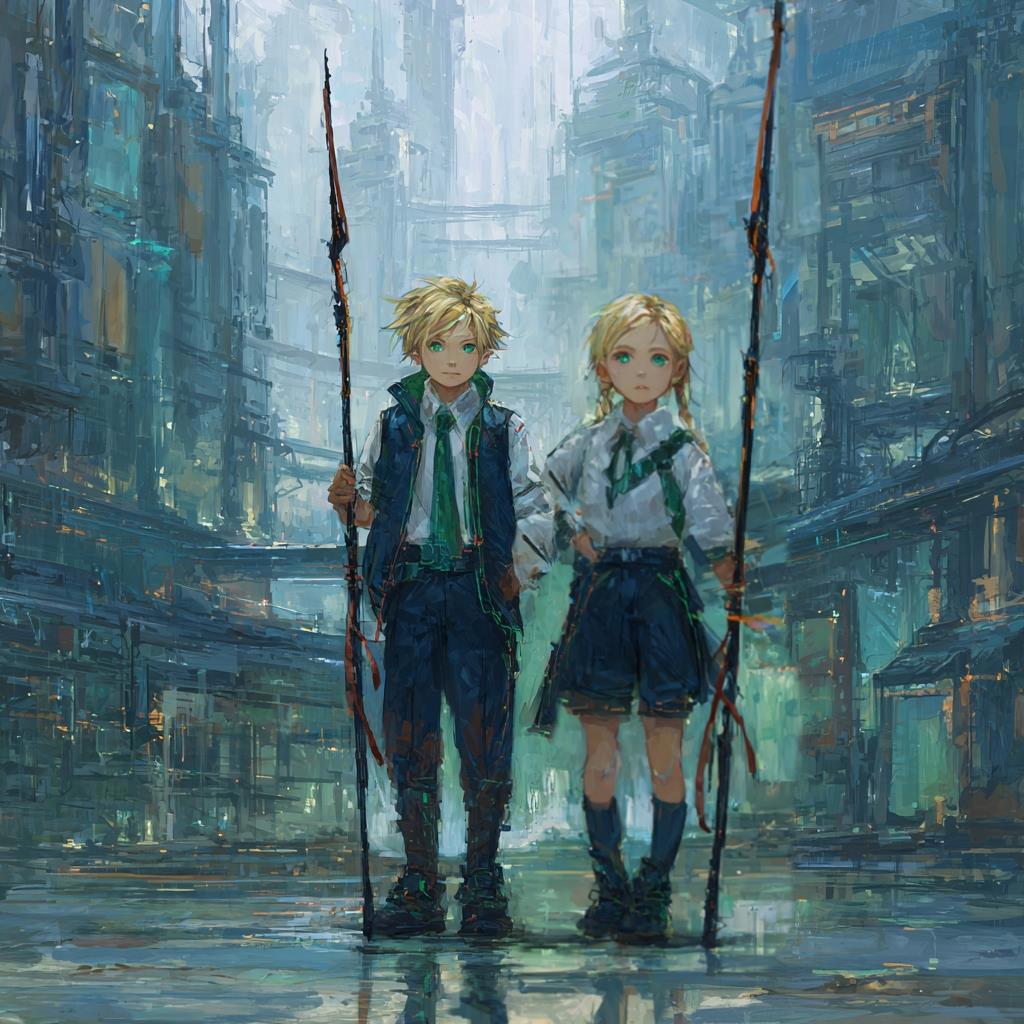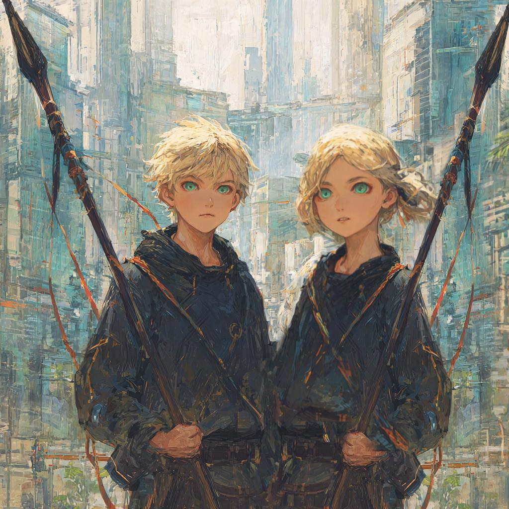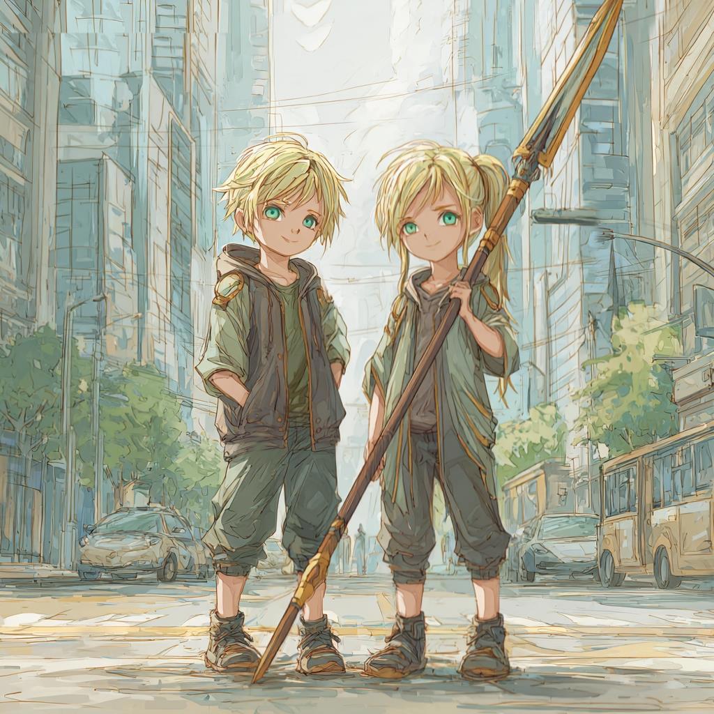 Он колдовал сеткой, я - мучил фотошоп, допиливая нюансы. Но в целом - получилось весьма и весьма неплохо! Как и заказывал - пара детей, с копьями, больше себя размером
