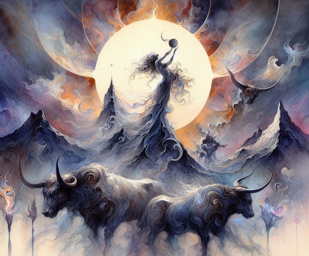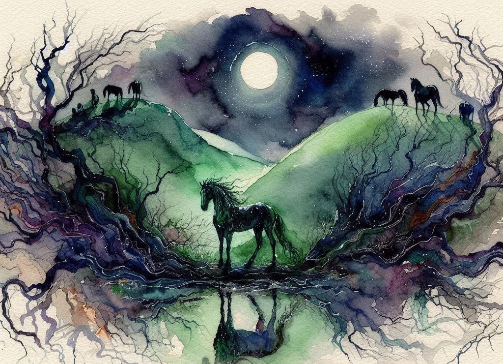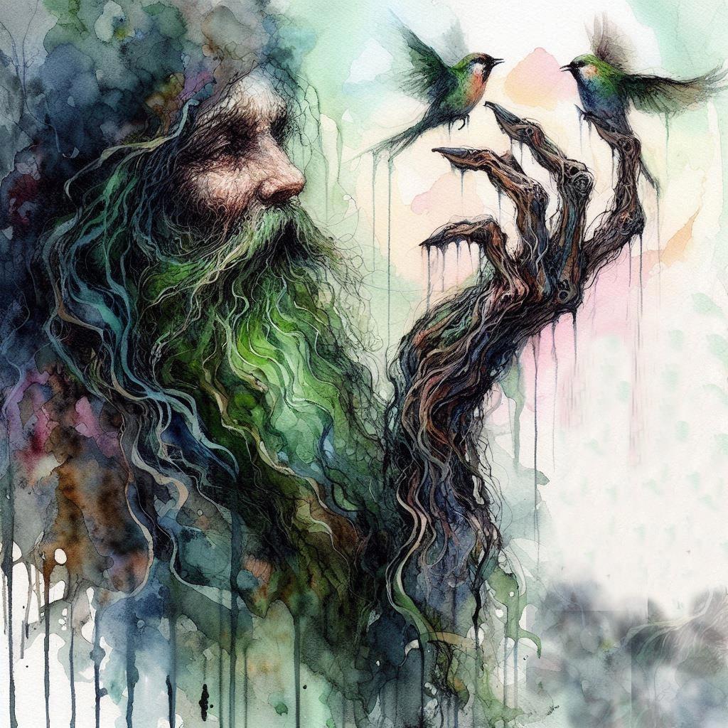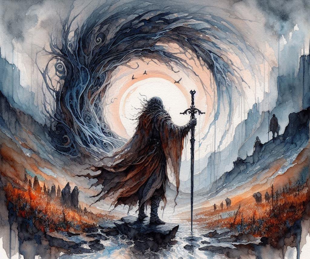 Что особенно интересно: Бинга понимает, что имеет дело со стихами. И любит эти самые стихи перевести, как сможет, и записать кракозябрами прямо на картинке. И таким образом у нас получаются иллюстрации, на которых остаётся поле для текста! Ну закрасить-то кракозябры и написать что-то годное - не обязательно цитату, по которой генерировалась картинка, можно и что-то совсем иное - дело одной минуты! Я уже делал: