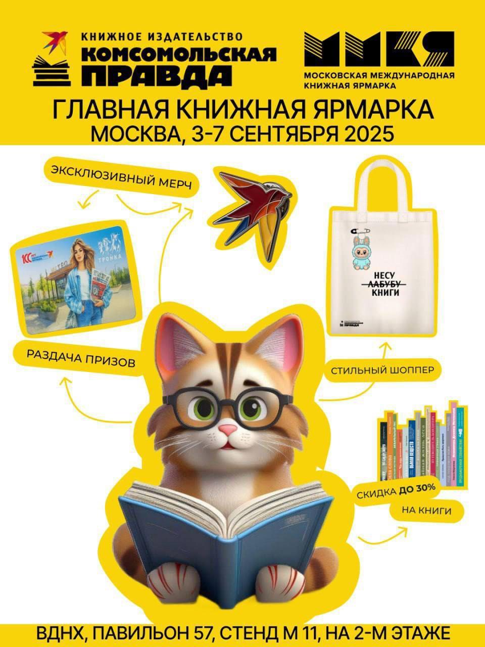 На ВДНХ в Павильоне 57 проходит Московская международная книжная ярмарка. Буду сегодня 04.09 и 06.09 с 13.00 на стенде М 11 издательства «Комсомольская правда», кто ещё идёт?