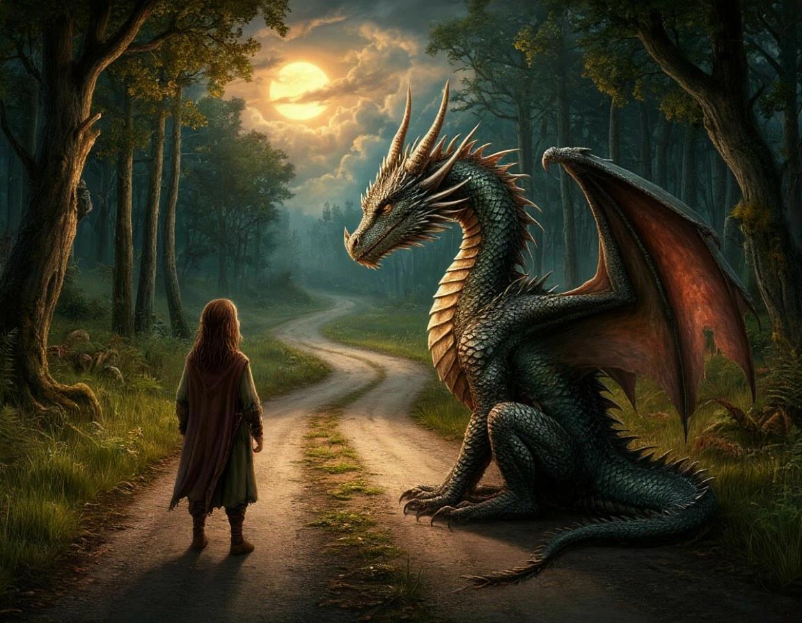 Автор: Алена СказочницаДракон шел за Сказочницей опустив голову к земле. После каждого поворота дороги он оглядывался и вздыхал. Когда солнце спряталось за тучки и в лесу стало темно, он сел на свой толстый шипастый хвост и всхлипнул. Сказочница остановилась и резко развернулась к нему.