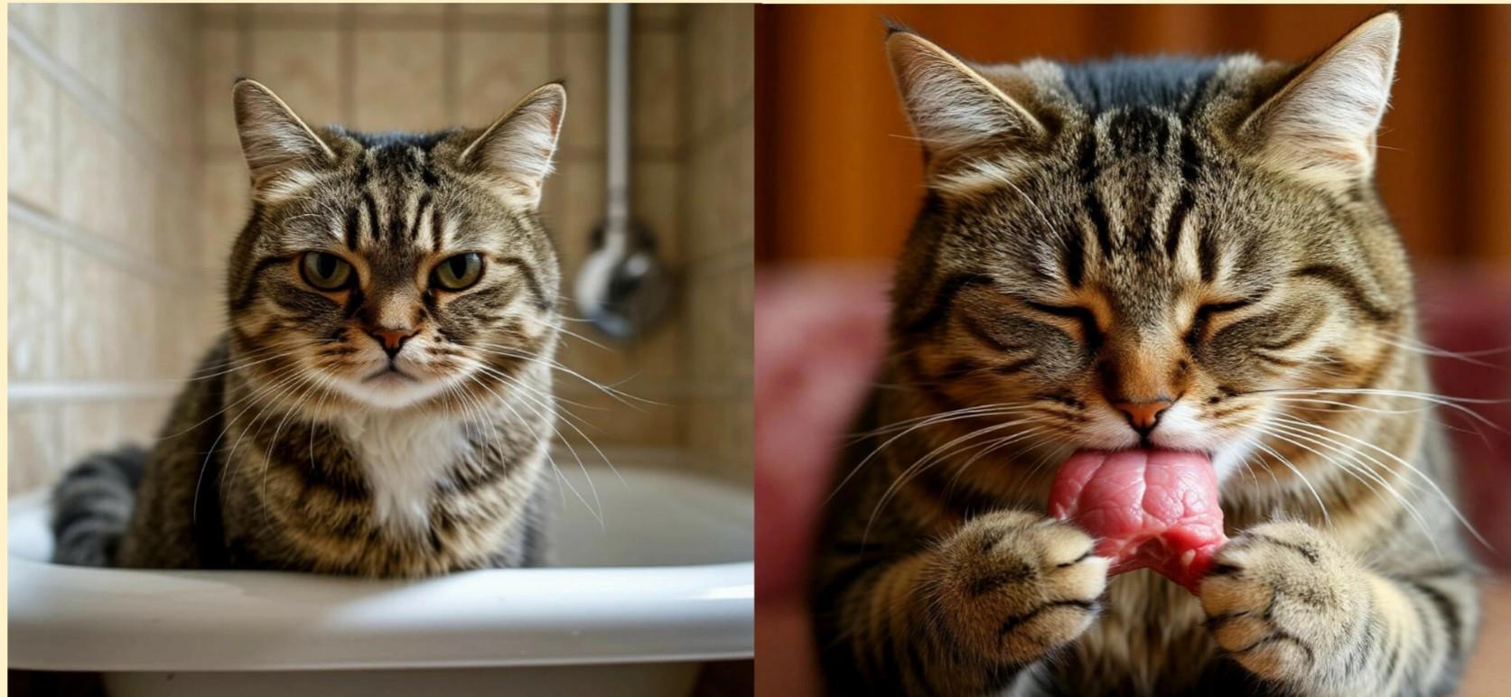 Дайте коту неизвестно как сбежавшему из ванной кусочек рульки.