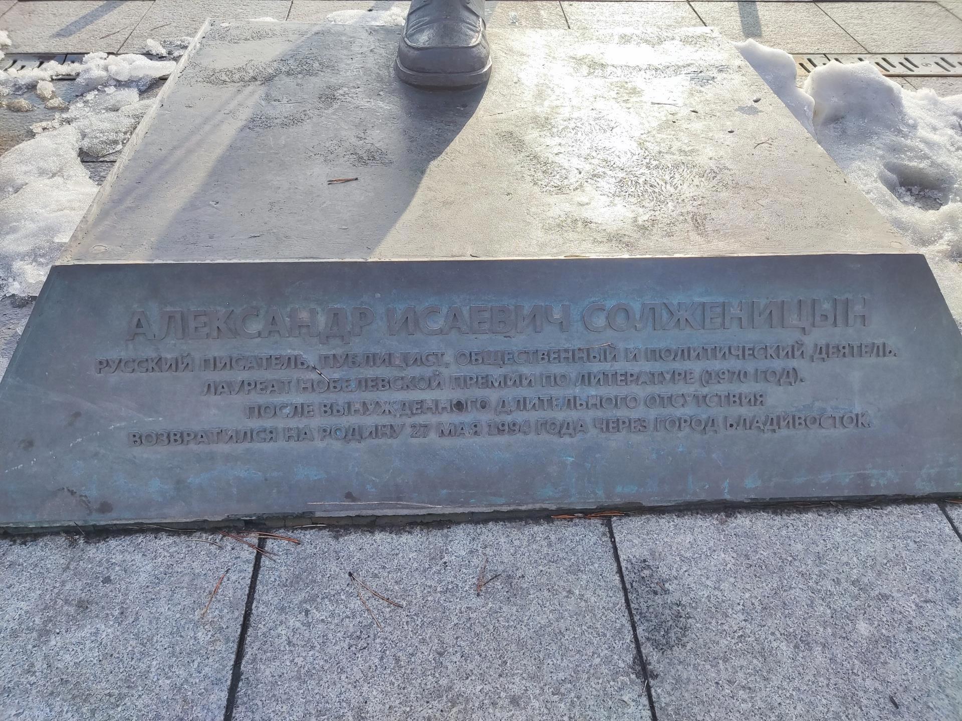 Памятник А. И. Солженицыну — бронзовая скульптура писателя, публициста, общественного и политического деятеля, лауреата Нобелевской премии по литературе (1970 год) Александра Исаевича Солженицына, установленная на Корабельной набережной Владивостока в 2015 году. Автор памятника — скульптор Пётр Чегодаев.